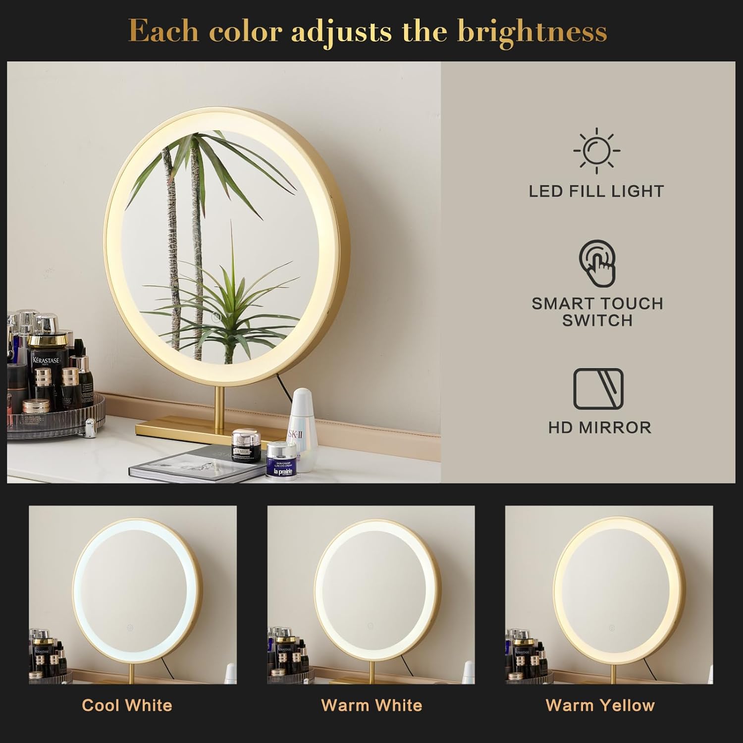 Luxury Vanity Desk with Mirror and Lights,2024 Latest Upgrade Material Vanity Table with Movable Cabinet,6 Drawers and Chair,Dressing Table Set for Girls Women (47.2"-Grey)