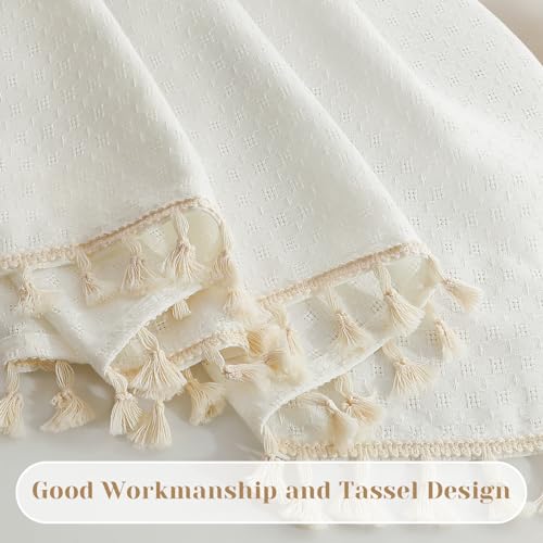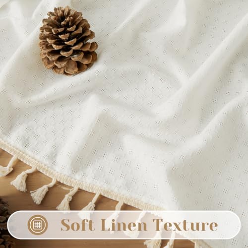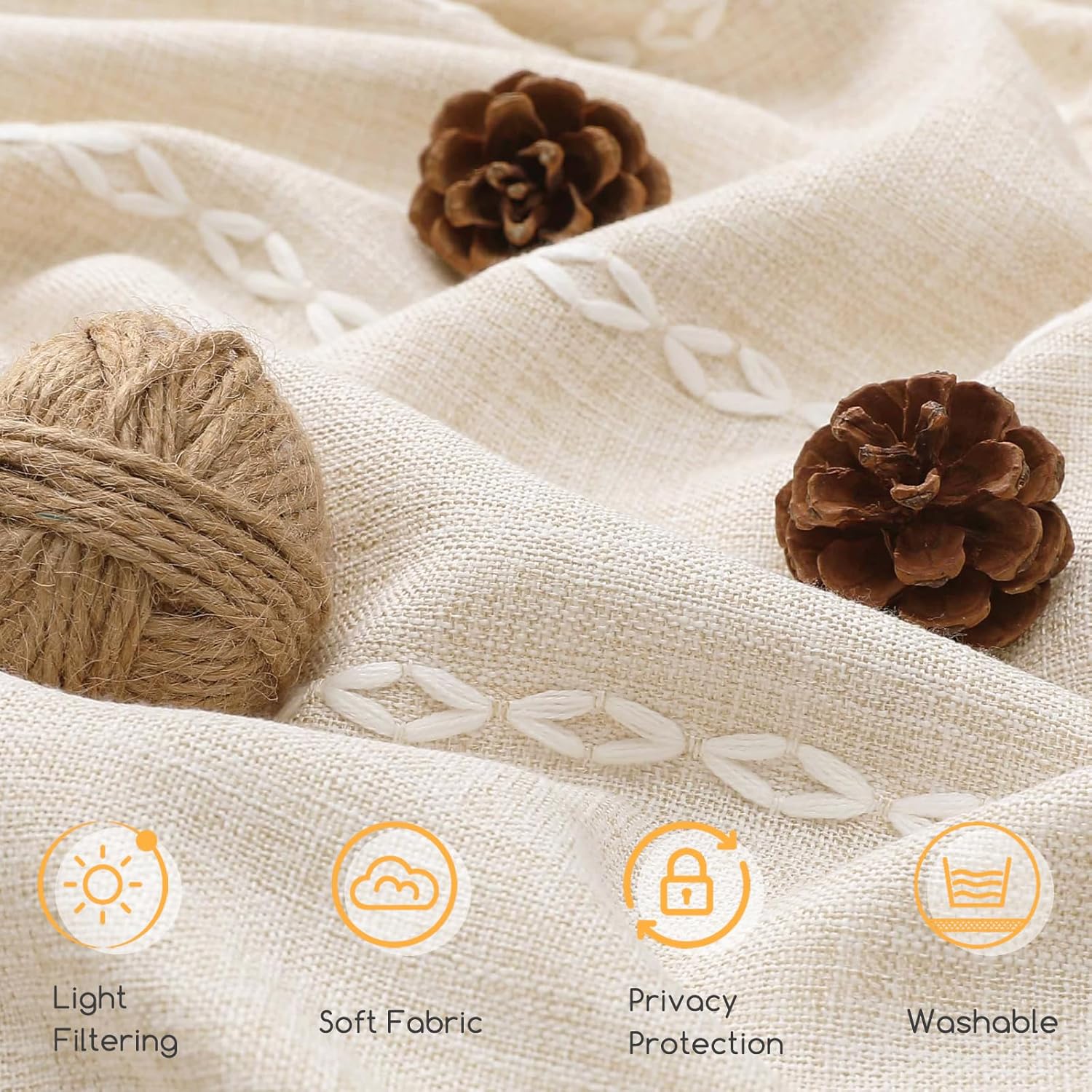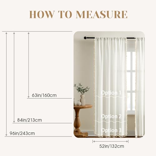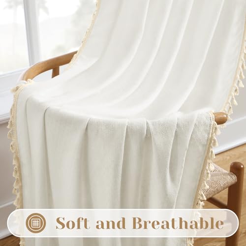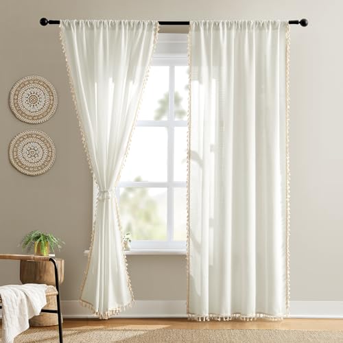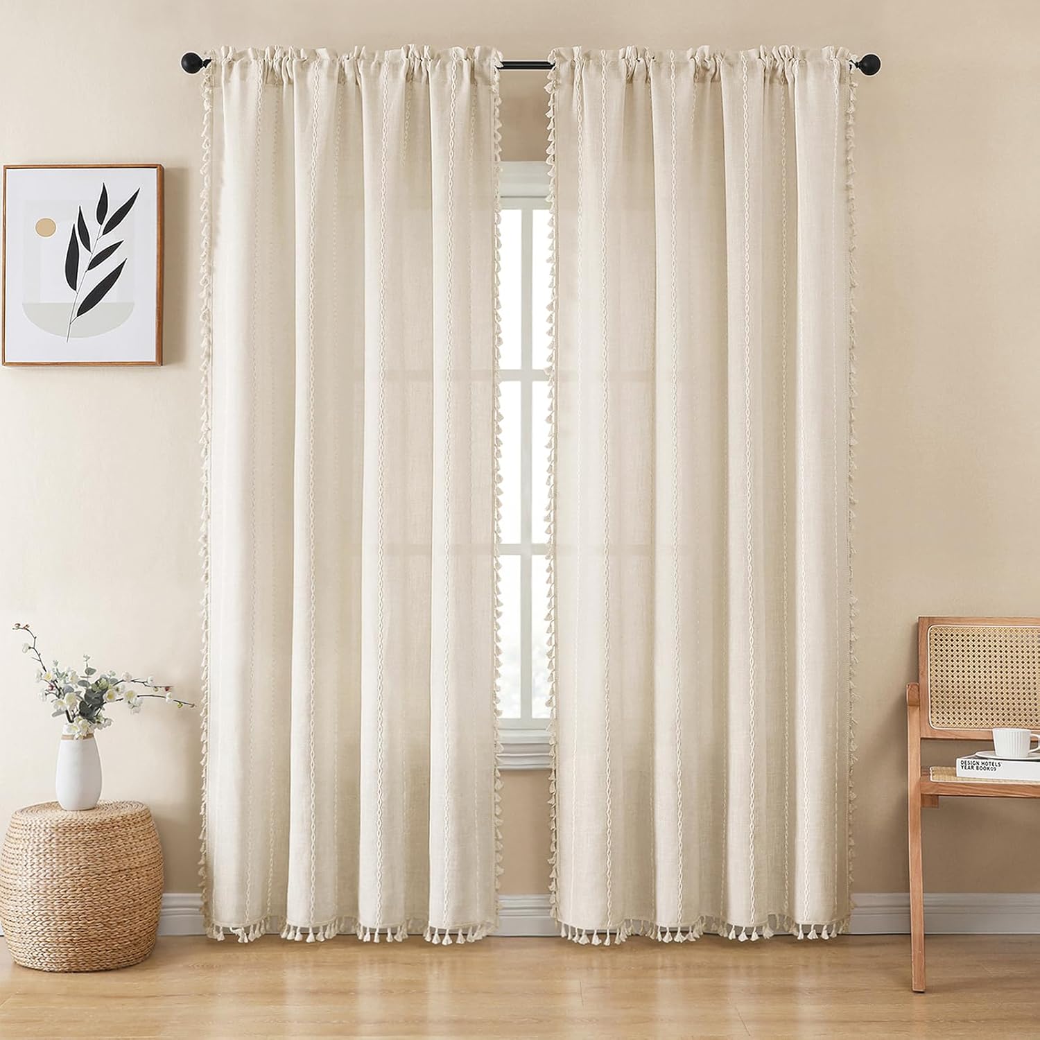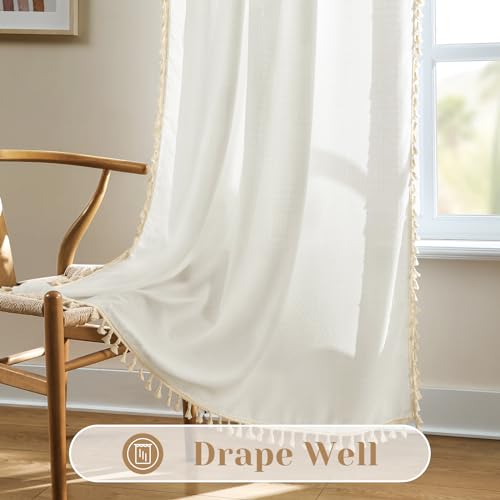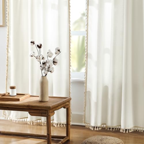 HOMEIDEAS Ivory Cream Boho Curtains for Bedroom, Farmhouse Linen Sheer Curtains 96 inches Long 2 Panels Set, Rod Pocket Privacy Light Filtering Living Room Curtains, Country Rustic Linen Curtains