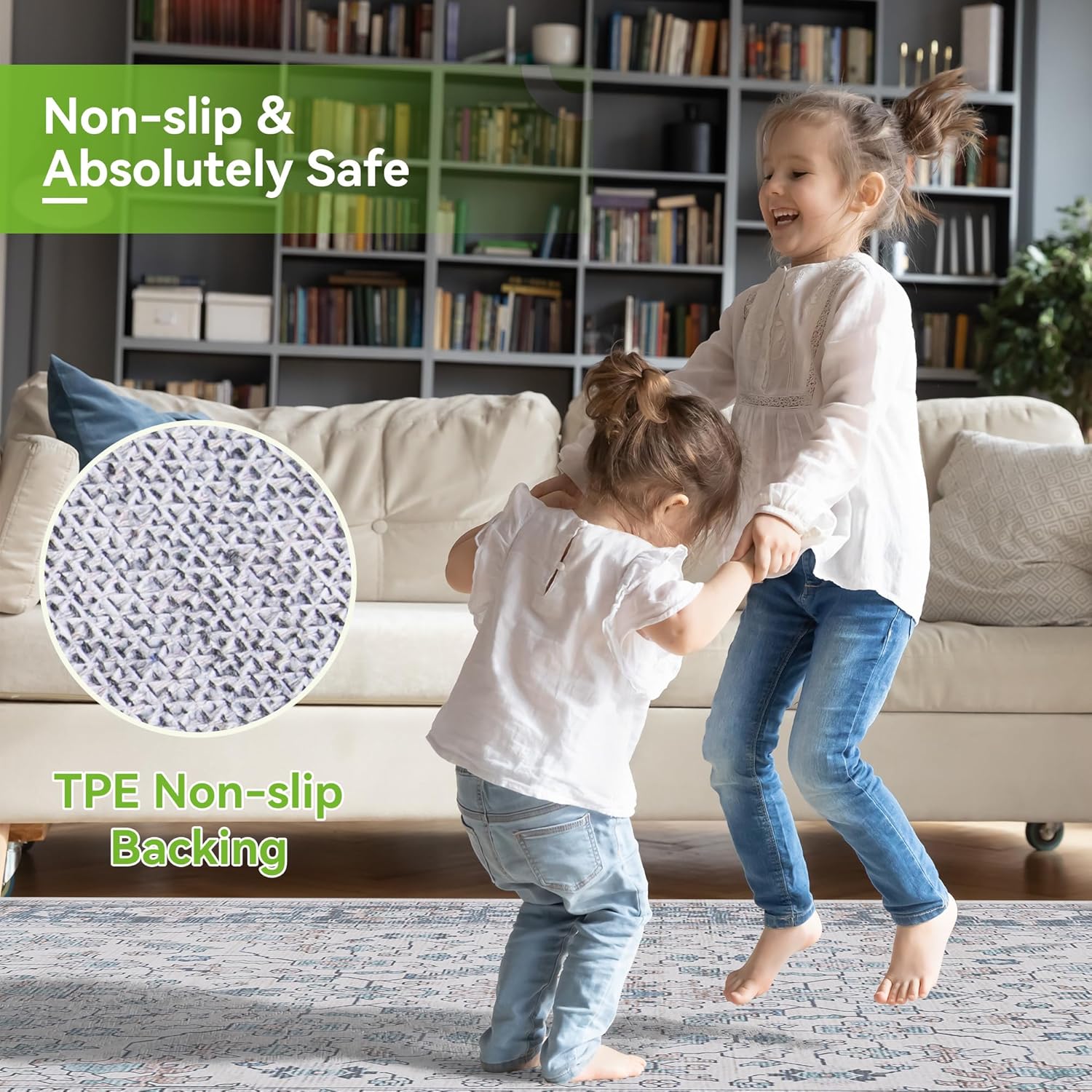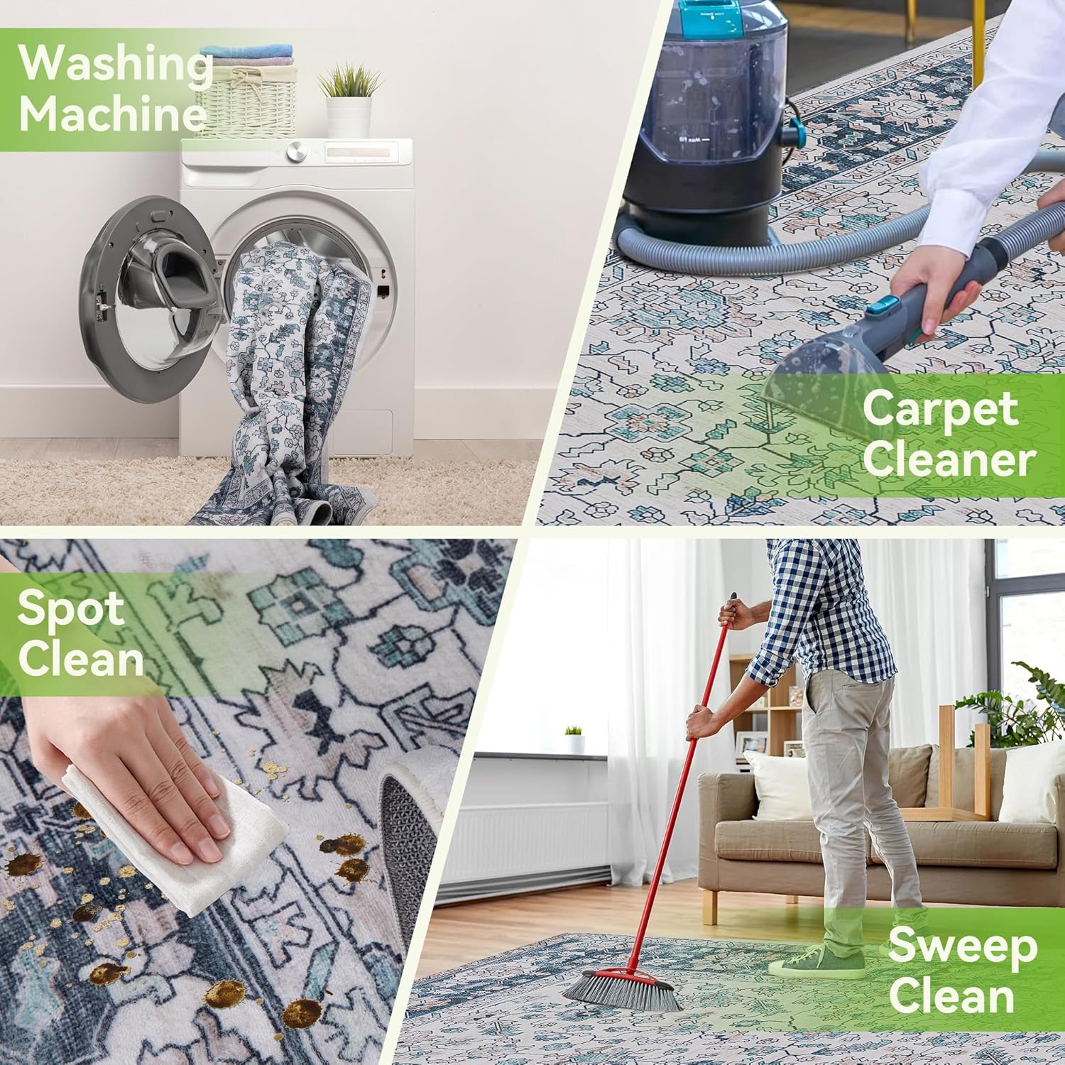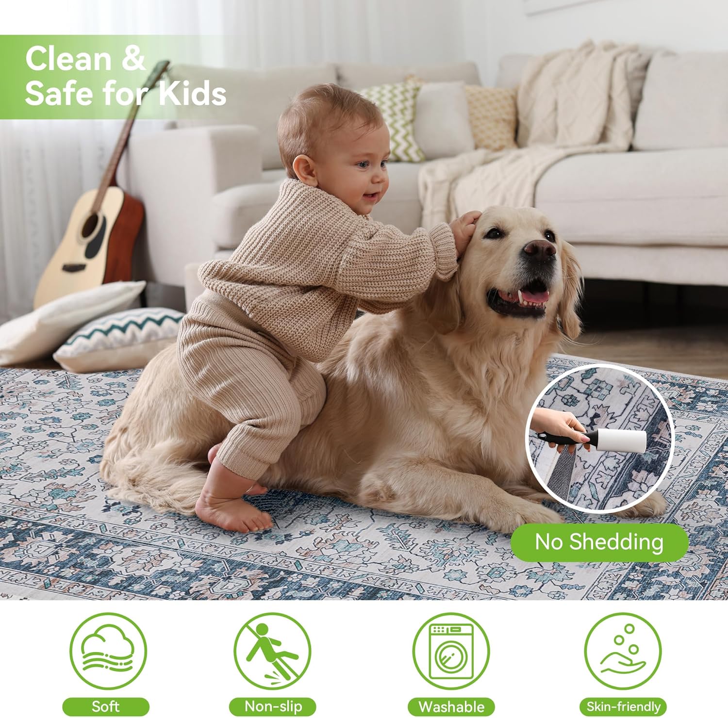 Area Rug for Living Room, 5x7 Area Rug Soft Carpet for Bedroom Non-slip Boho Rug Low-pile Machine Washable Rug Oriental Vintage Rug Carpet for Dining Room Navy Blue Cream