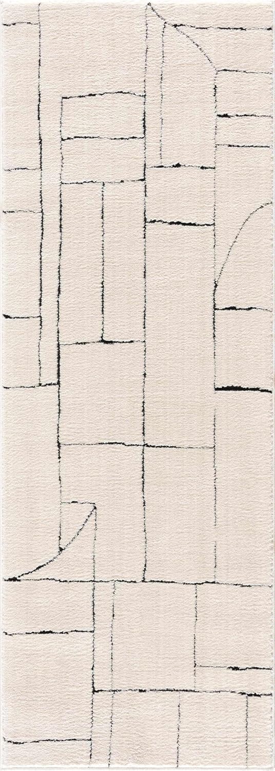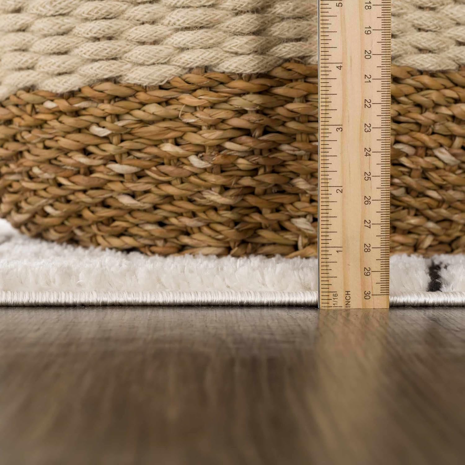 Hauteloom Keats Living Room, Bedroom Shag Area Rug - High Pile - Modern Abstract Geometric - Beige, Cream, Black - 6'7" x 9'