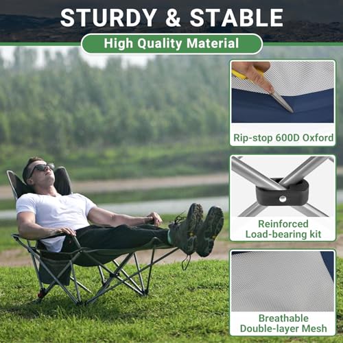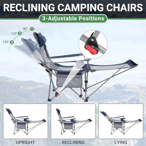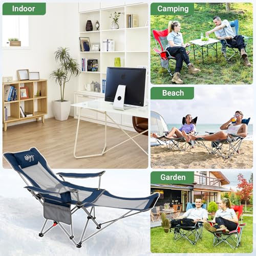 #WEJOY 2-in-1 Reclining Camping Chair, Lightweight Folding Camping Chair with Adjustable Backrest & Footrest, Camping Lounge Chair with Headrest, Cup Holder, Storage Bag, for Beach, Lawn, Concert