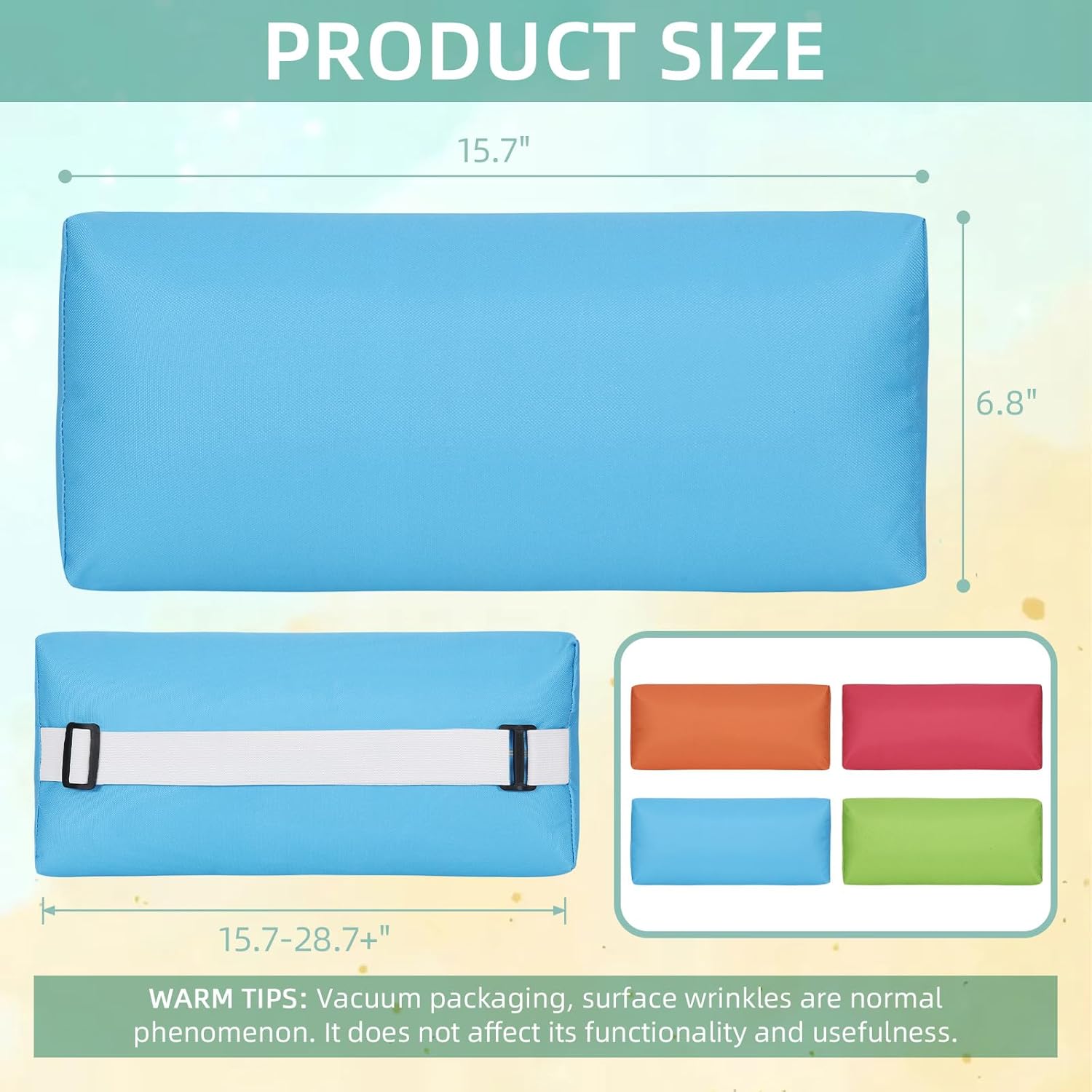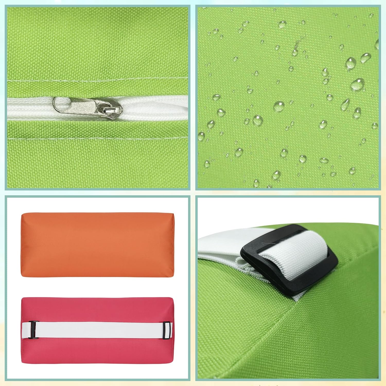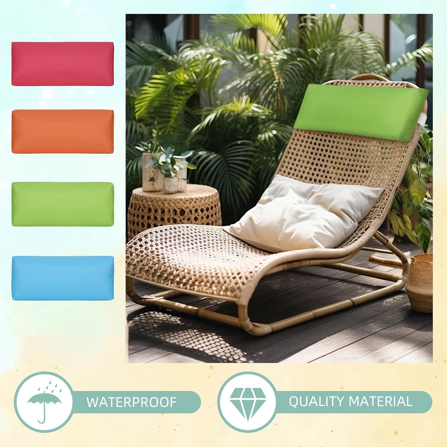 Decorative Outdoor Pillow, 4 Pack Chaise Lounge Headrest Pillows Pool Lounge Chair Pillows with Strap Recliner Pillow for Patio Garden Beach Balcony(Blue, Green, Brick Red, Orange)