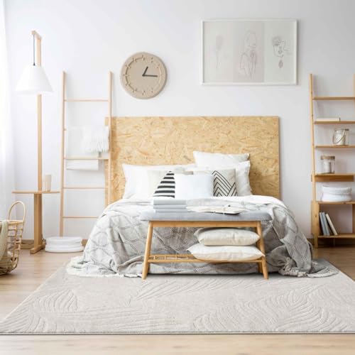LUXE WEAVERS Botanical Print Cream 6x9 Area Rug Modern Leaves Carpet for Living Room