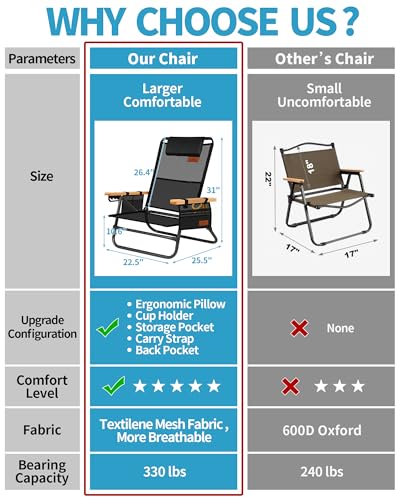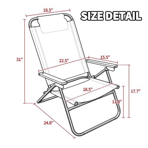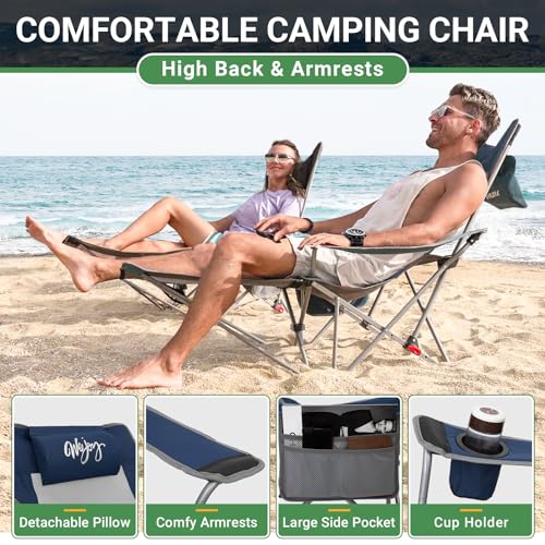 #WEJOY Beach Chair for Adults High Back Low Folding Camping Chair Portable Lightweight with Headrest for Camping, Travel, Concert, Lawn, Festival, Support 265lbs