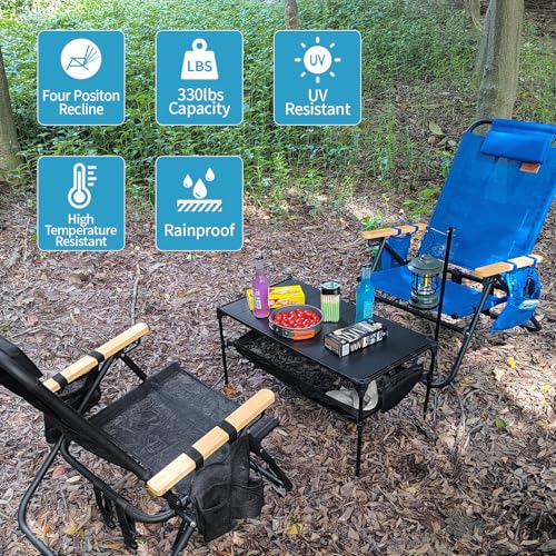 Camping Chair, 4 Adjust Position Compact Backpacking Chair, Portable Folding Chair, Beach Chair with Side Pocket, Headrest, Mesh Seat TSL(Black 2 Pack)