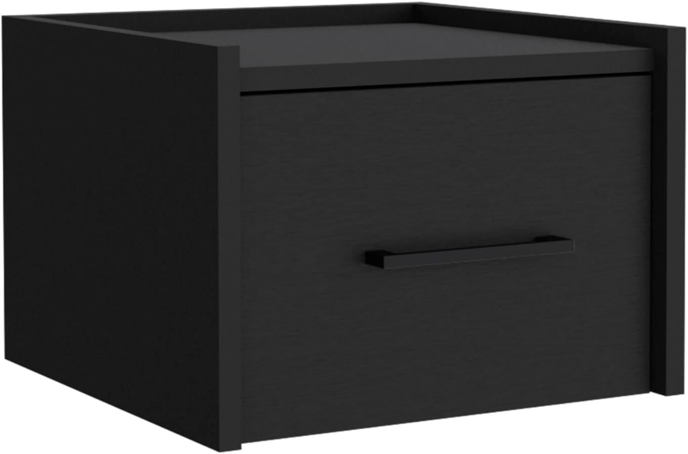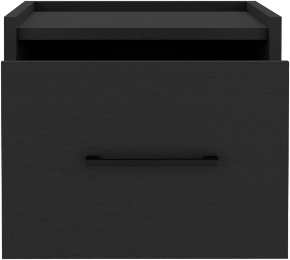 Black Modern Floating Nightstand, Space-Saving Design with Convenient Drawer and Black pull Handle.