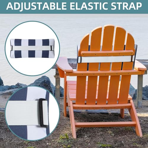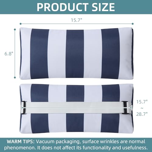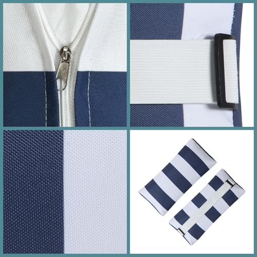 Outdoor Chair Pillows, 4 Pack Chaise Lounge Headrest Pillows Striped Pool Lounge Chair Pillows with Strap Recliner Pillow for Patio Garden Beach Balcony (Navy Blue)