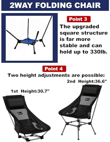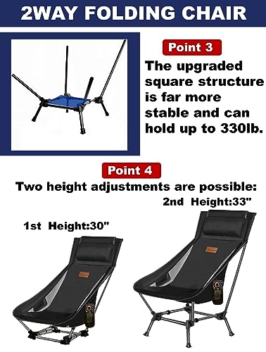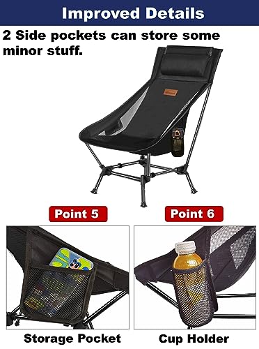 Camping Chair 2 Pack, Compact Backpacking Chair, Portable Folding Chair, Beach Chair with Side Pocket and headrest, Lightweight Hiking Chair (Short Leg)