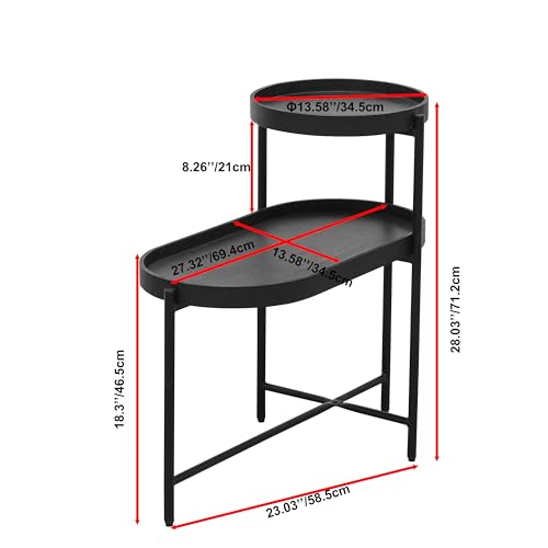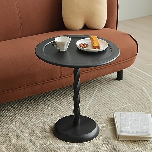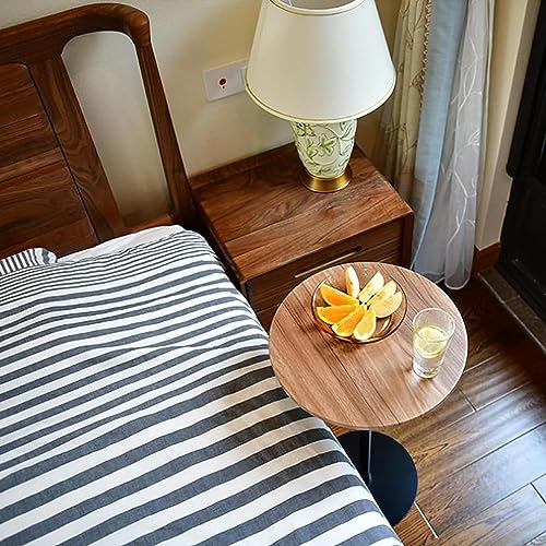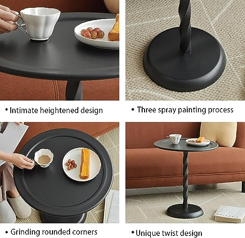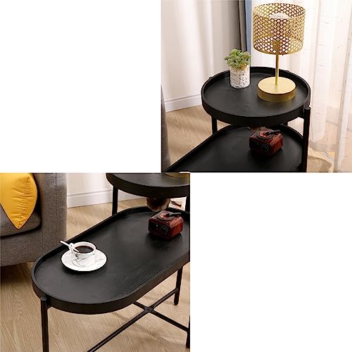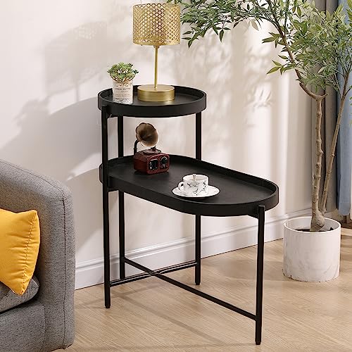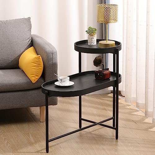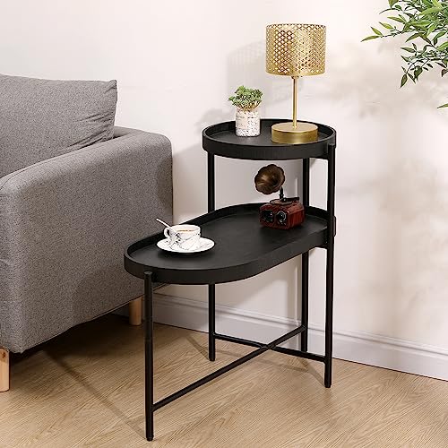 Side Table for Small Spaces Round 2-Tier Sofa Table Wooden End Table Living Room Coffee Table Nightstands Bedside Table Accent Table,Wood Tabletop & Black Metal Frame,Black