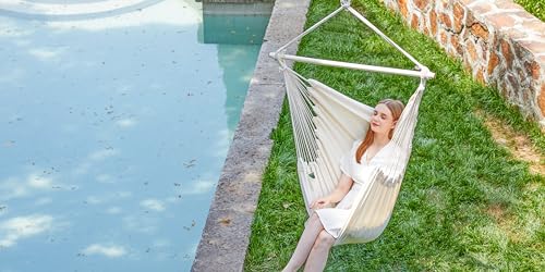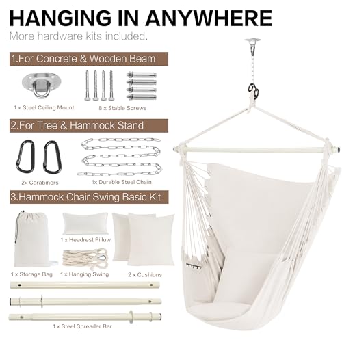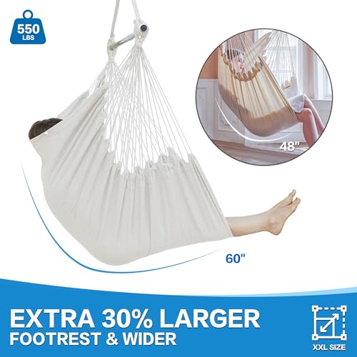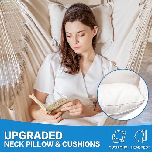 PNAEUT Hammock Chair XXL Size, Hanging Chair, Swing Chair, Max 550 Lbs, Headrest, 2 Cushions, Large Size with Pocket, Steel Spreader Bar, Hardware Kits and Bag for Indoor Outdoor (Blue)