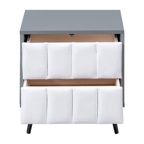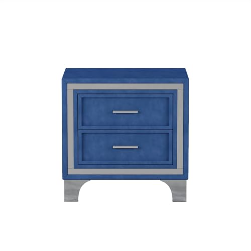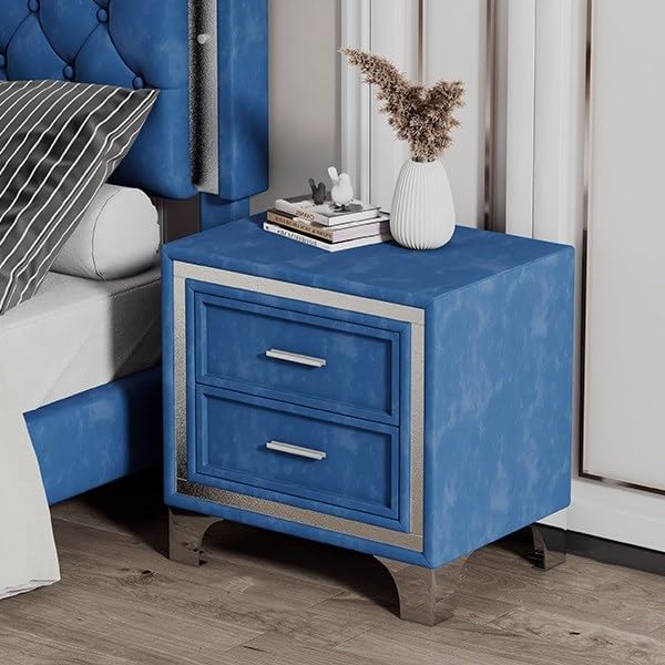 Velvet 2-Drawer Nightstand with Metal Legs, Mid-Century Bedside Table for Bedroom - Space Saving and Fully Assembled Except Legs and Handles, Beige