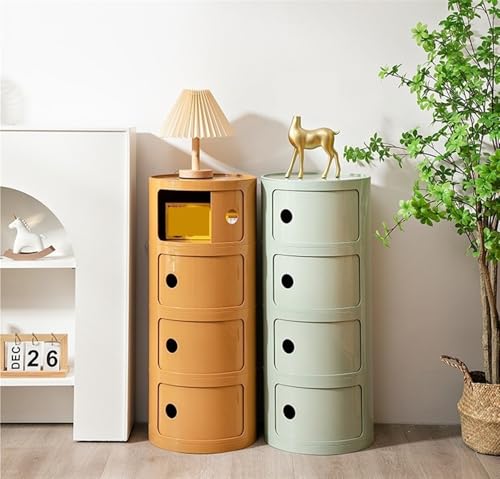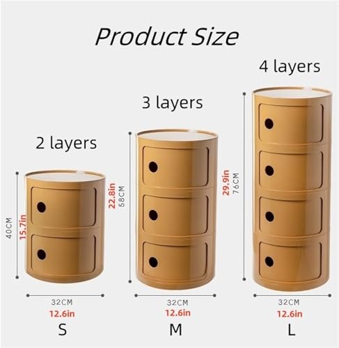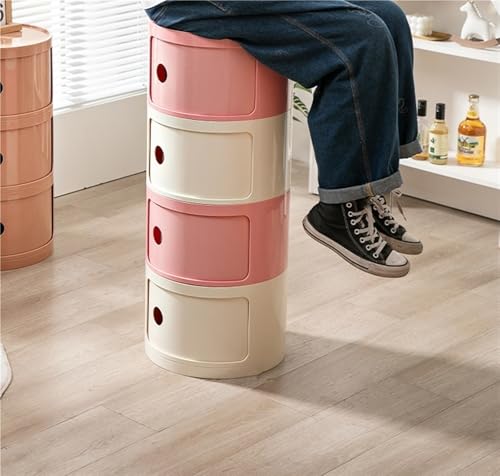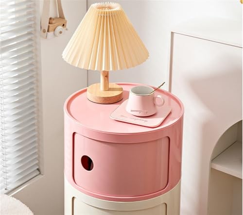 Round Nightstand with Drawer, 2/3/4 layers Round Nightstand with Storage, Bedside Tables, Modern Side Table, Space-saving Bedside Table(Pink,Large)