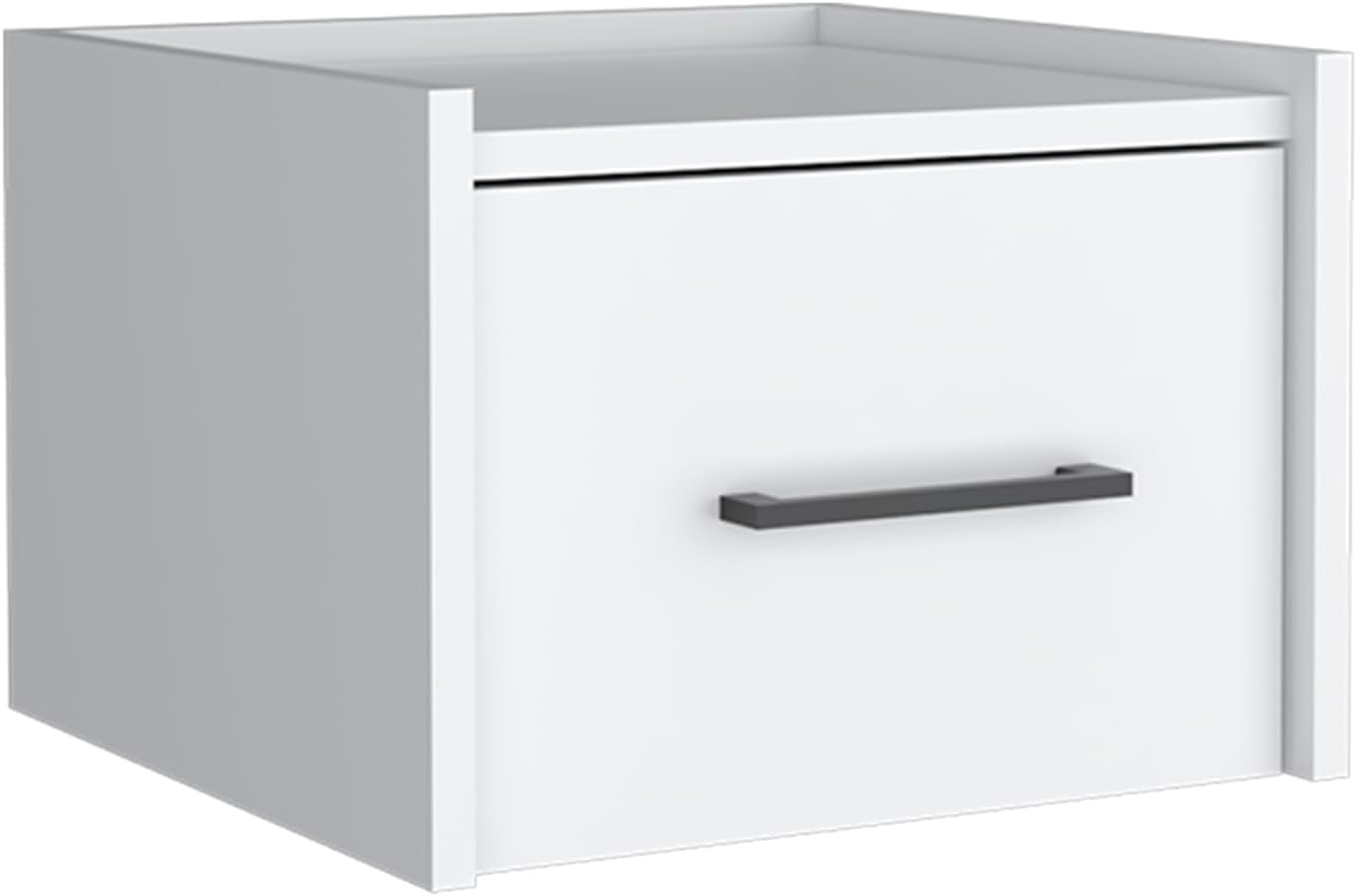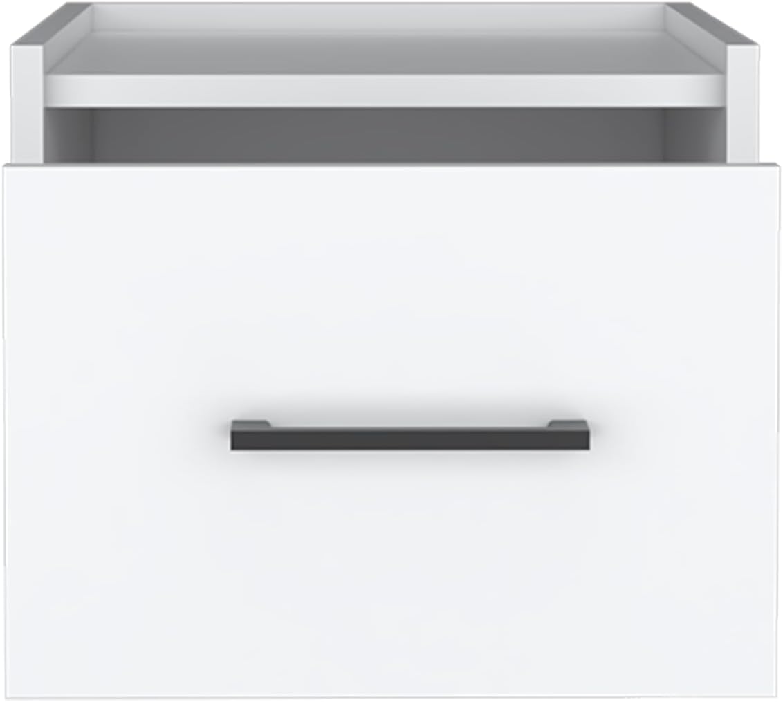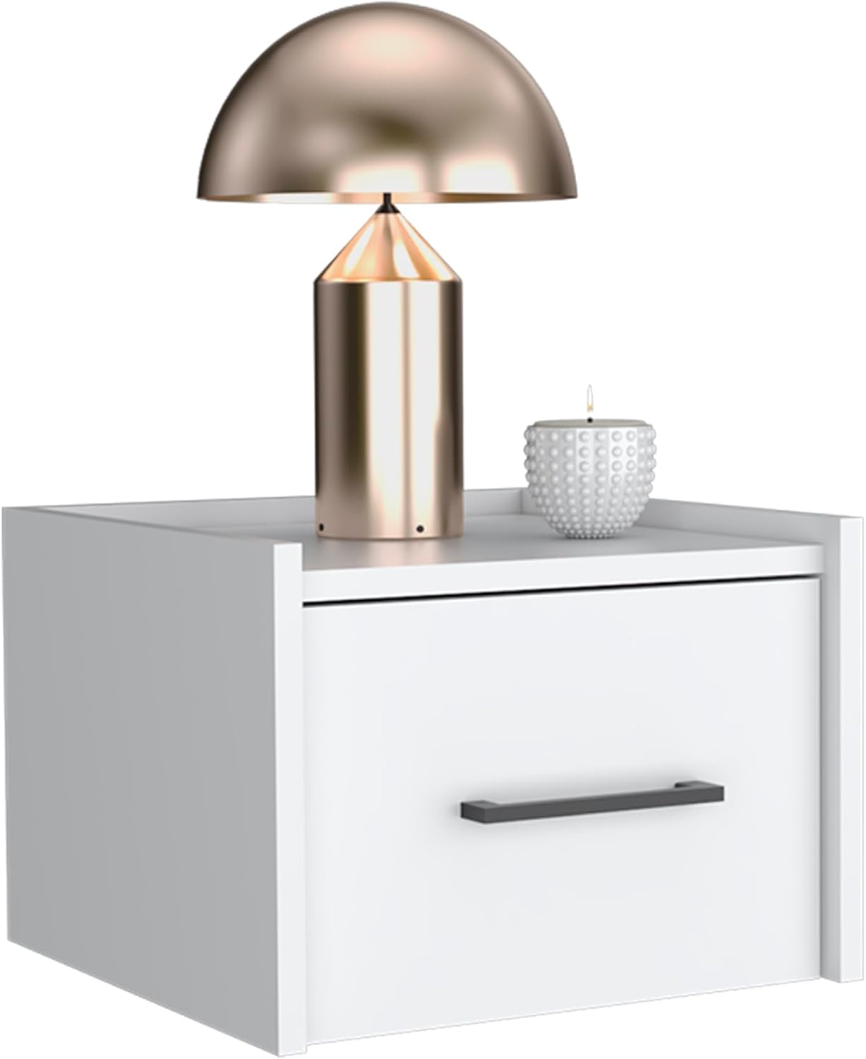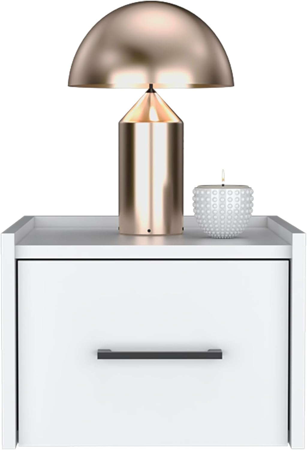 White Modern Floating Nightstand, Space-Saving Design with Convenient Drawer and Black pull Handle