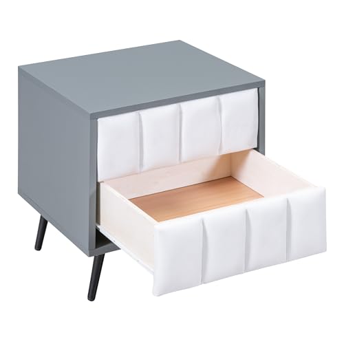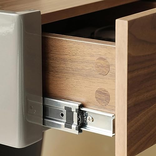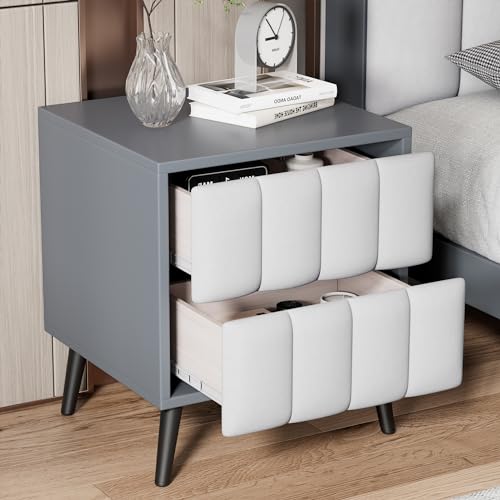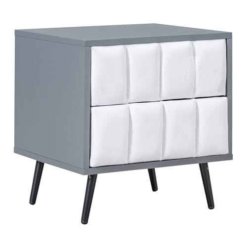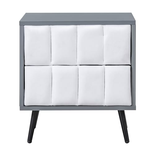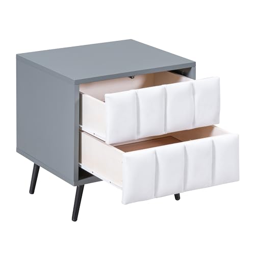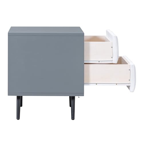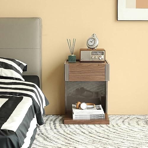 Modern Bedroom Nightstand Bedside Table with 2 Drawers, Metal Legs Night Stand Space Saving Spacious Bed Side Table for Living Room, Office, Studio Walnut+Beige