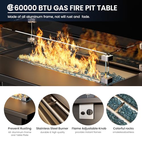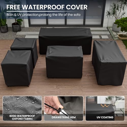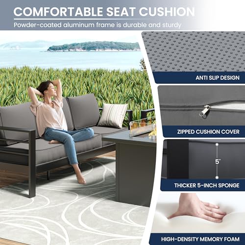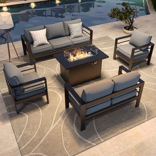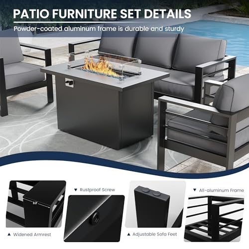 Amopatio Aluminum Patio Furniture, 8 Pieces Metal Outdoor Furniture Set, Modern Patio Sofa Sets Outdoor Sectional for Pool, Garden, Dark Grey&Blue (Included Waterproof Covers)