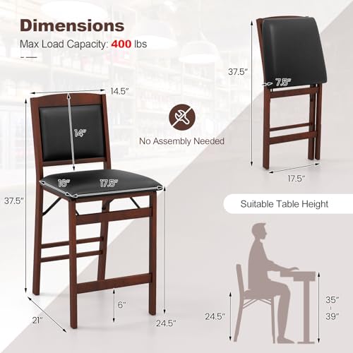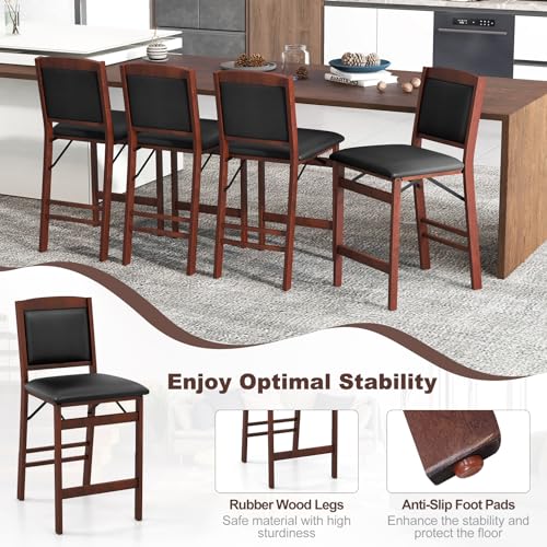 COSTWAY Set of 4 Counter Height Chairs, 24.5” Folding Kitchen Island Stool with Rubber Wood Legs, Footrest, Padded Seat & Backrest, No Assembly Needed, Portable Bar Stools Set for Dining Room Home (4)
