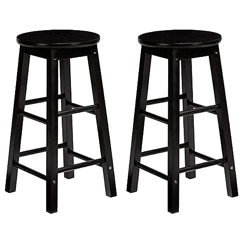 PJ Wood Classic Round Seat 29" Tall Kitchen Counter Stools for Homes, Dining Spaces, and Bars with Backless Seats & 4 Square Legs, Natural (Set of 4)