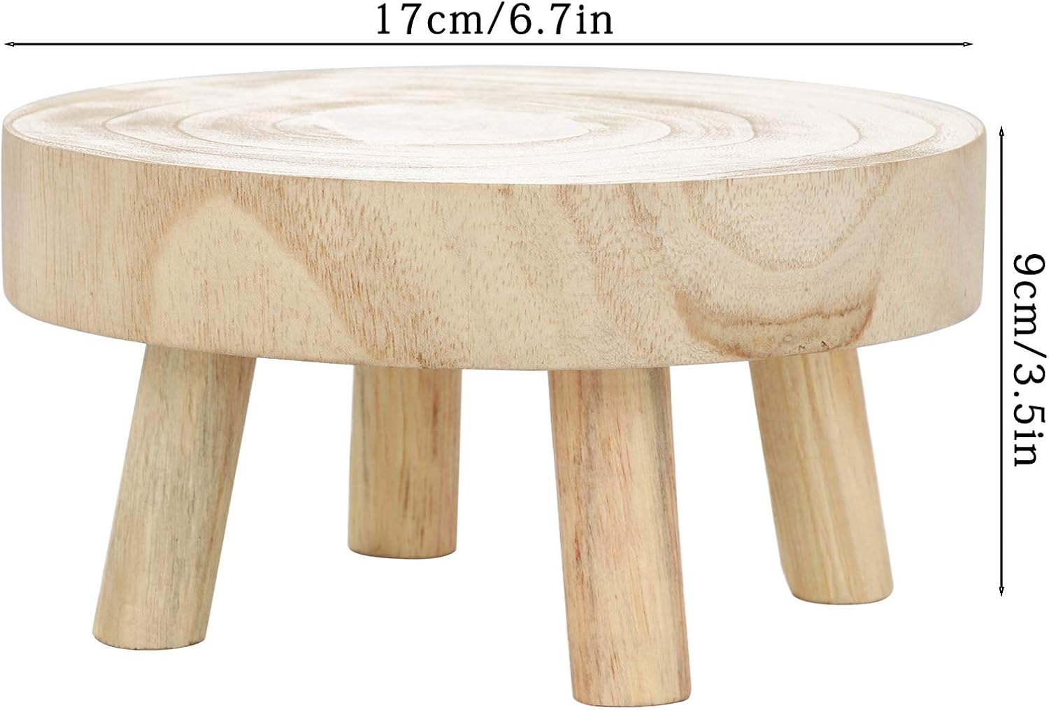 Mini Round Wooden Stool, Wooden Plant Stand Mid Century Wood Flower Pot Holder for Outdoor Indoor Home Office Decorations, Warm Brown, M