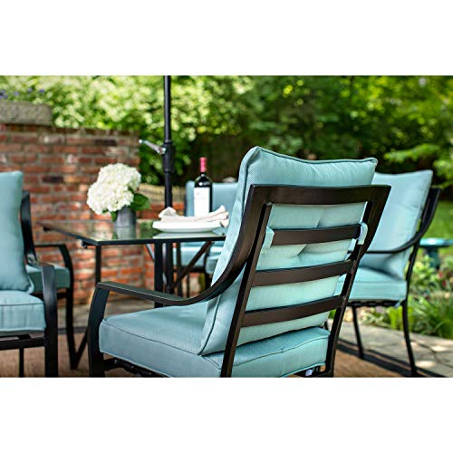 Hanover Lavallette 5-Piece Patio Dining Set with 4 Counter-Height Swivel Chairs, 52" Round Glass-Top Table, and Weather Resistant UV Protected Silver Cushions, Premium Outdoor Furniture, 5PC BAR