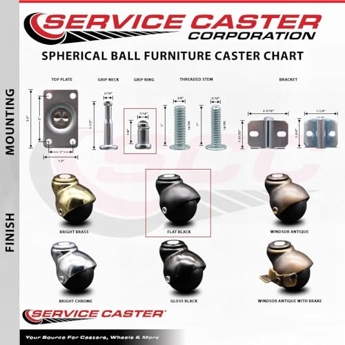 2 Inch Swivel Ball Caster Wheels for Furniture - Flat Black Hooded Casters with Top Plate – Casters for Coffee Tables and Ottomans - 300 lbs. Total Capacity - Set of 4 – Service Caster Brand