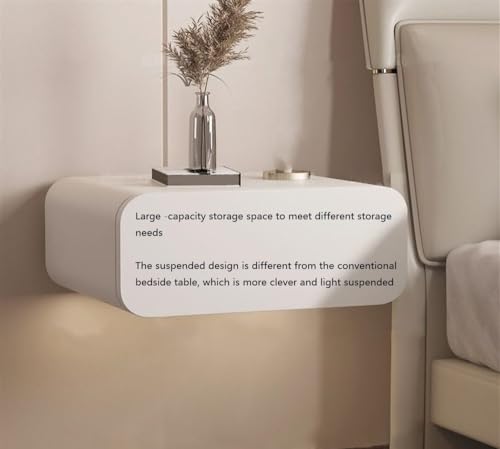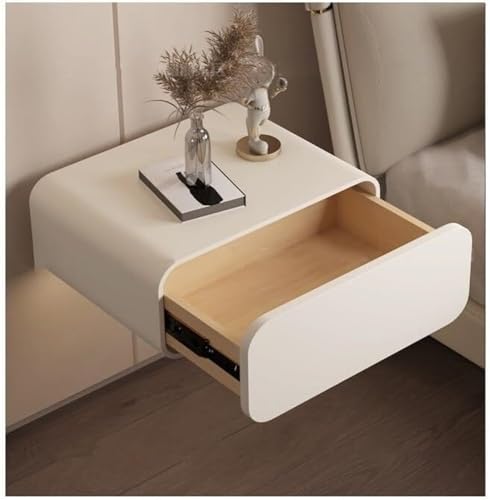 Wall Mounted Floating Nightstand with Drawers - Solid Wood Floating Bedside Table for Bedroom or Bathroom, Space-Saving (Color : Khaki, Size : 50 * 40 * 20)