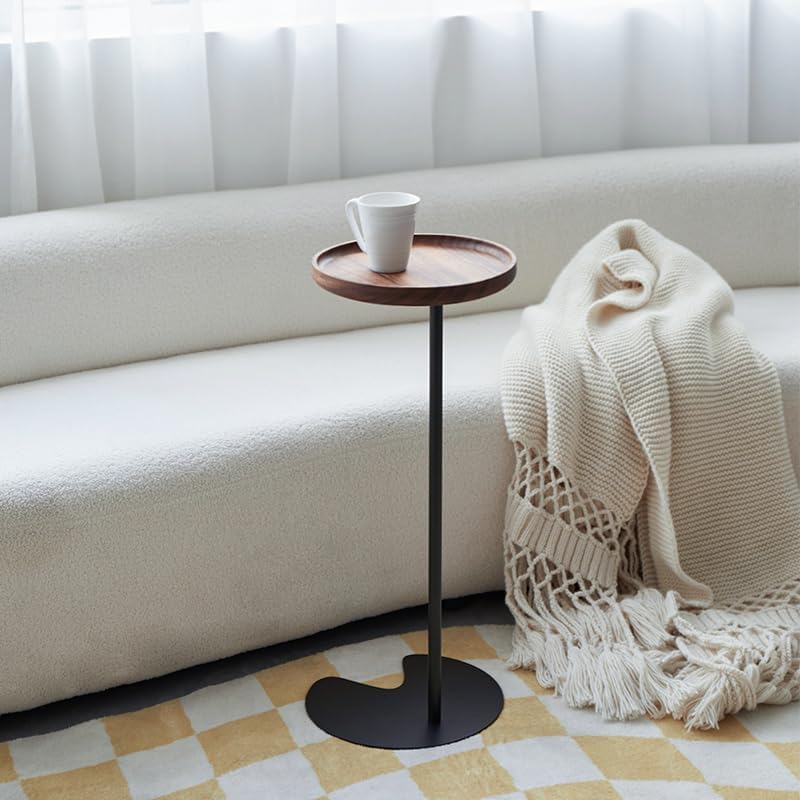 End Table Round End Table Solid Wood Side Table Unique Tray Table Home Center Table Metal Frame Coffee Table Living Room Bedside Table Space-saving