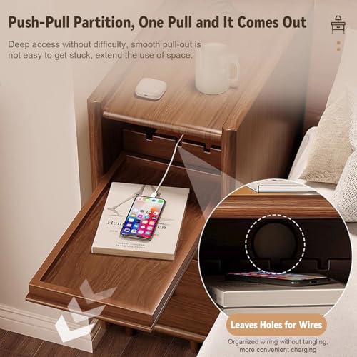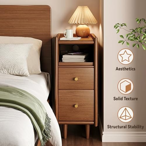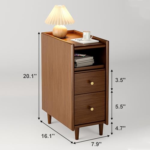 Wooden Nightstand Small Bedside Table With 2 Drawers And 1 Shelf End Table 7.9in 9.8in 11.8in Wide Minimalist Modern Practical Side Table Durable Space-saving For Bedroom Living Room(Walnut,7.9x16.1x2