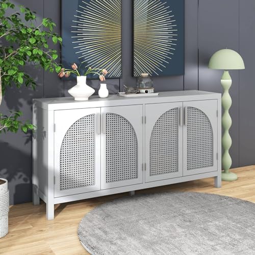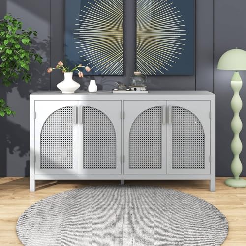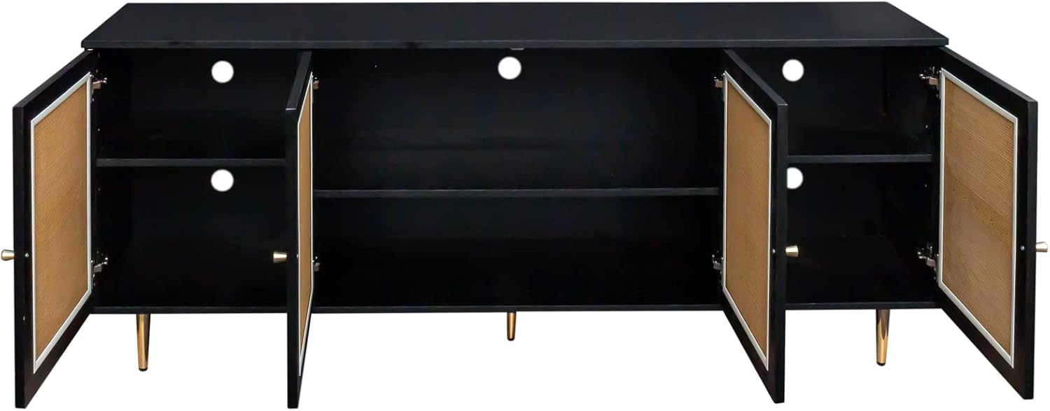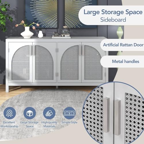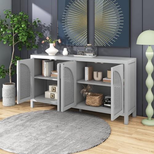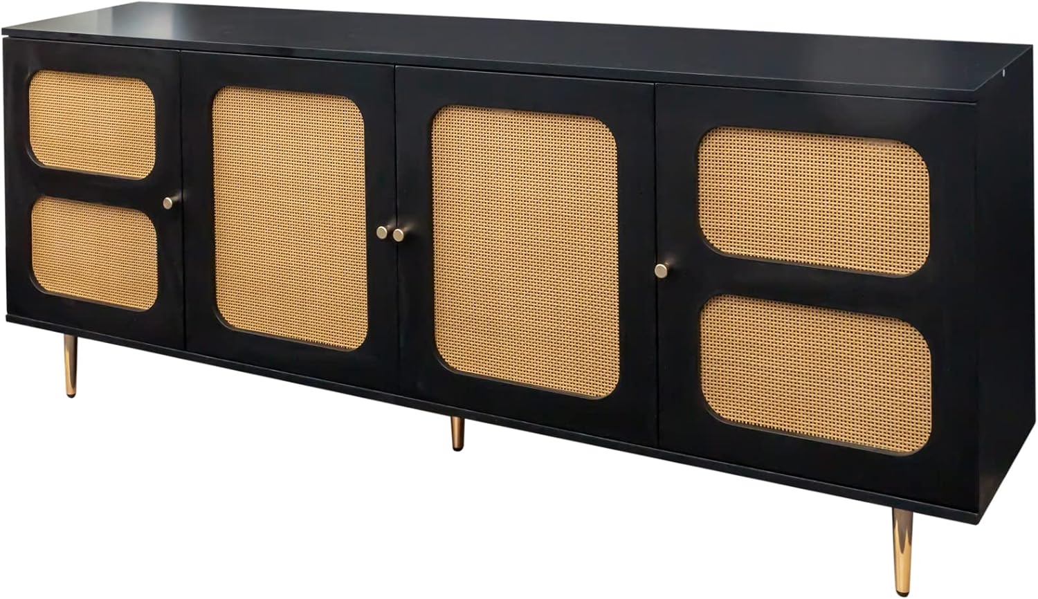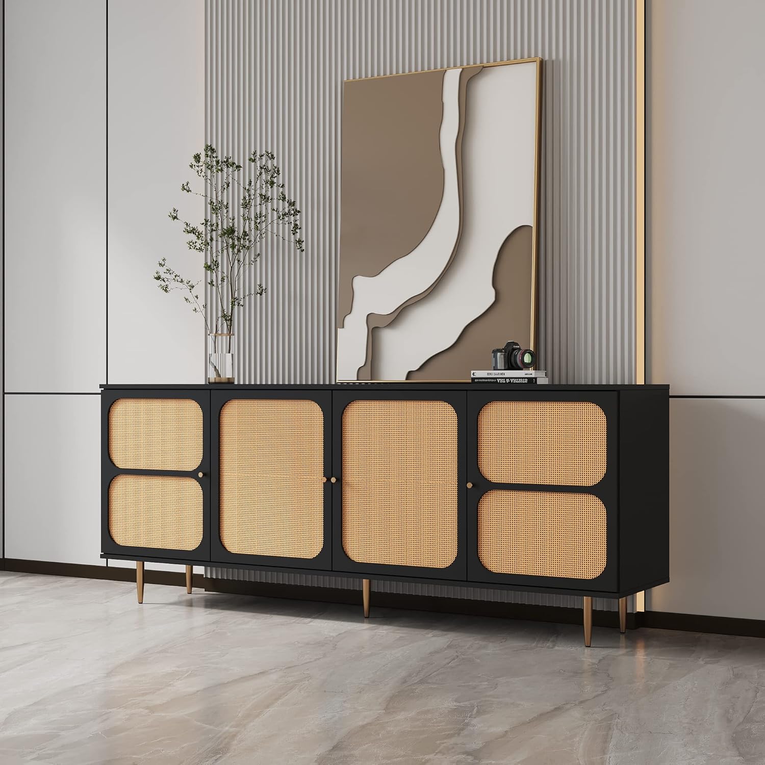 Spacious Sideboard Buffet Cabinet with 4 Rattan Doors, Adjustable Shelves, and Easy Assembly - 70.87" x 15.75" x 23.62" - Perfect for Home Storage and Organization