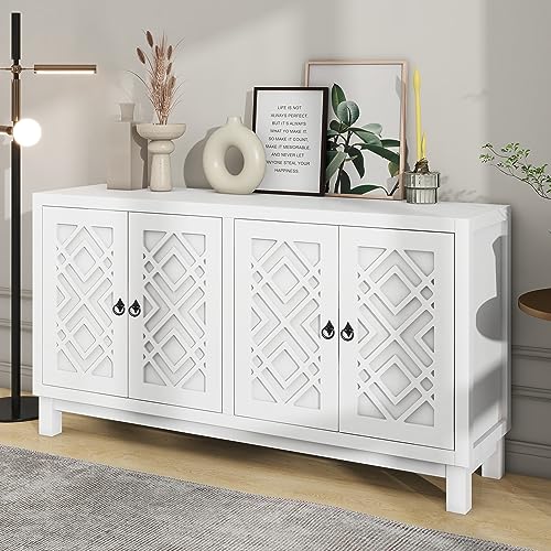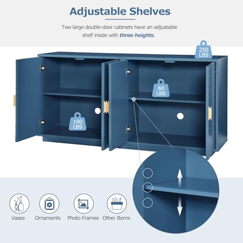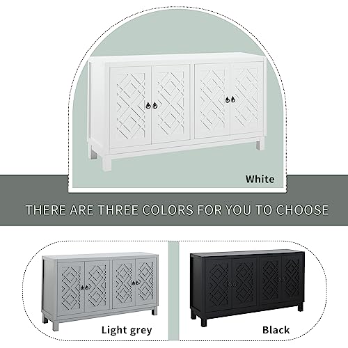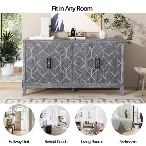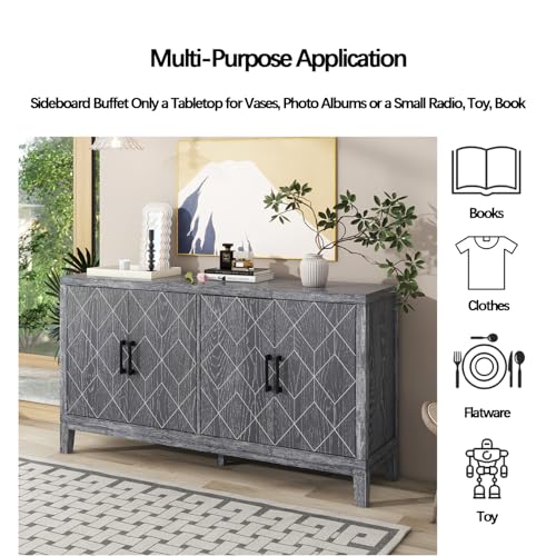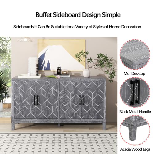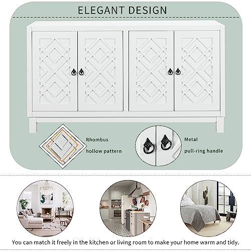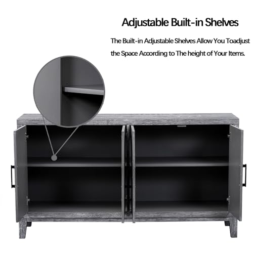 P PURLOVE Sideboard Storage Cabinet, 4 Door Buffet Cabinet with Pull Ring Handles, Large Storage Space Sideboard with Adjustable Shelves for Living Room, Dining Room (Black)