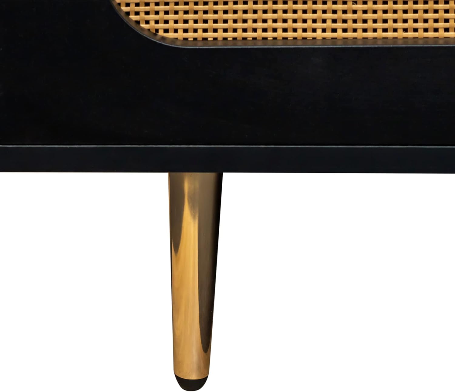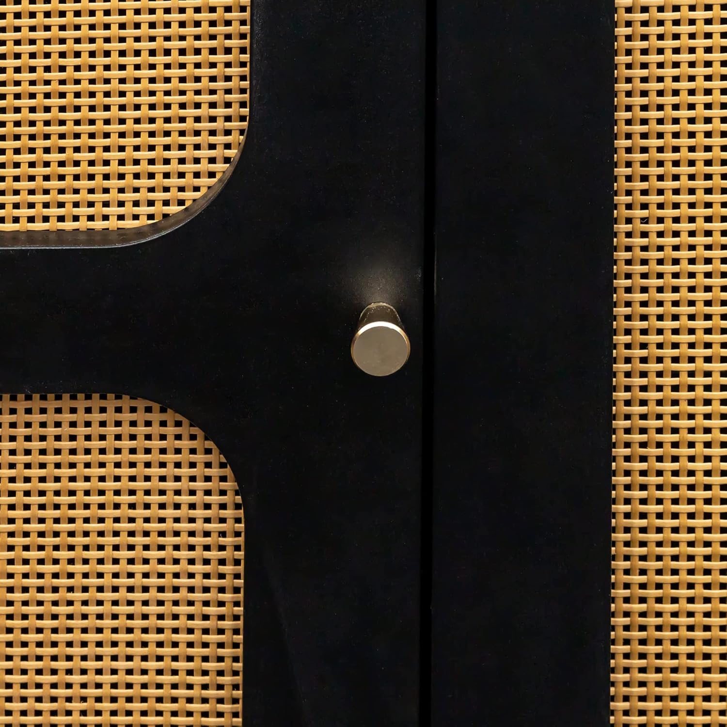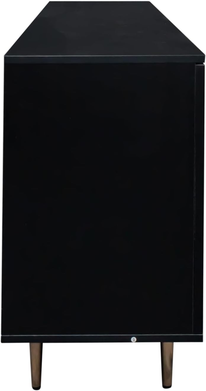 Rattan Sideboard Buffet Cabinet with Storage Black,Kitchen Buffet Storage Cabinet,Accent Cabinet with Doors&Drawers&Adjustable Shelves&Anti-Dumping Device,TV Credenzas for Living Room (Black)