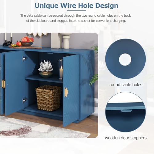 Modern Functional Large Storage Space Sideboard with Wooden Triangular Handles and Adjustable Shelves Modern Console Sofa Table for Living Room and Dining Room (Black)