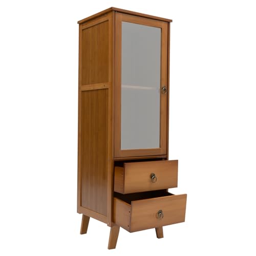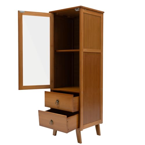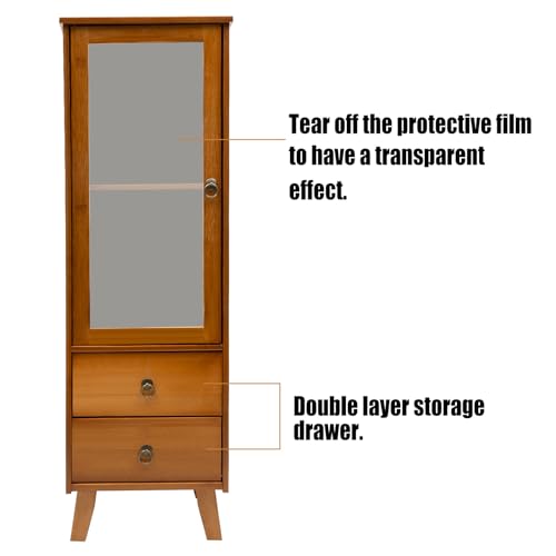 Storage Cabinet Wooden Display Cabinet Sideboard Cabinet with Magnetic Suction Door, Multifunctional Storage with Acrylic Glass,Tall Slim Narrow Bathroom Storage Cabinet (One door with 2 drawer)