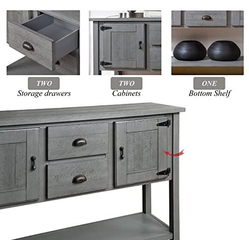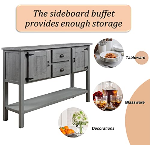 48'' Solid Wood Sideboard Storage Cabinet with 2 Drawers Console Table Buffet Entry Server Cabinet for Living Room Dining Room Kitchen Hallway