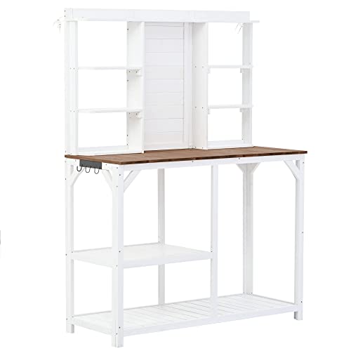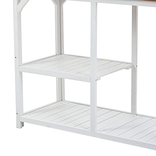 65" Outdoor Potting Bench Table with Storage,Wooden Garden Workstation with Shelf and 2 Drawers for Patio,Backyard,White
