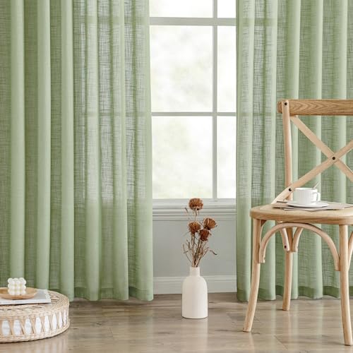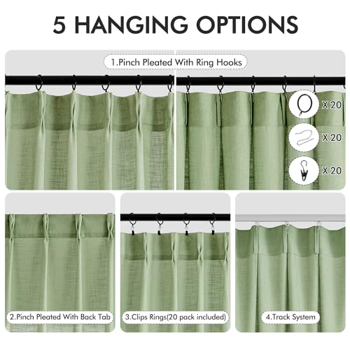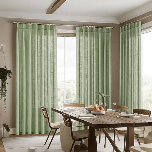 MIULEE Pinch Pleated Natural Linen Curtains 108 Inches Long 2 Panels for Bedroom Living Room, Soft Thick Linen Textured Window Drapes Back Tab Hooks Semi Sheer Light Filtering Neutral Farmhouse Cream
