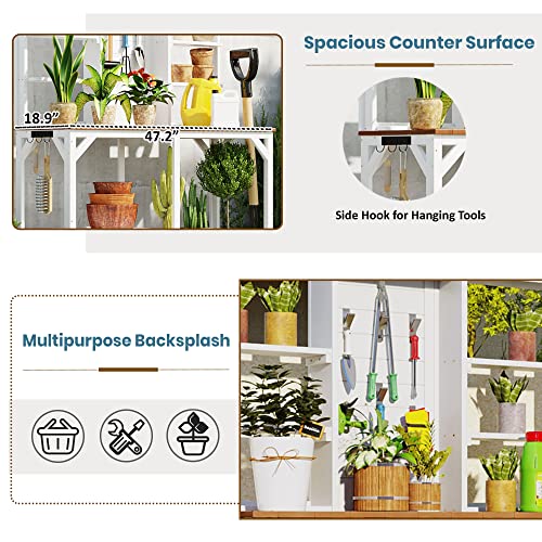 Potting Bench Table with 6-Tier Shelves and Side Hook, Polibi 64.6" Large Wooden Outdoor Patio Workstation, Garden Potting Bench for Mudroom, Backyard (Green)