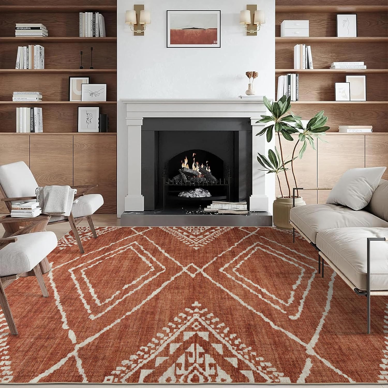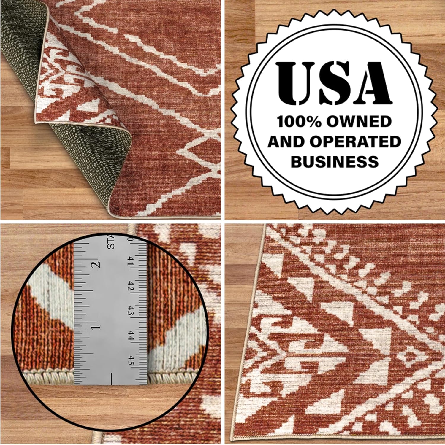 ReaLife Machine Washable Area Rug - Living Room Bedroom Bathroom Kitchen Entryway Office - Padded Low Pile Stain Resistant Premium - Moroccan Diamond Tribal - Jax - Orange 7'6" x 9'6"