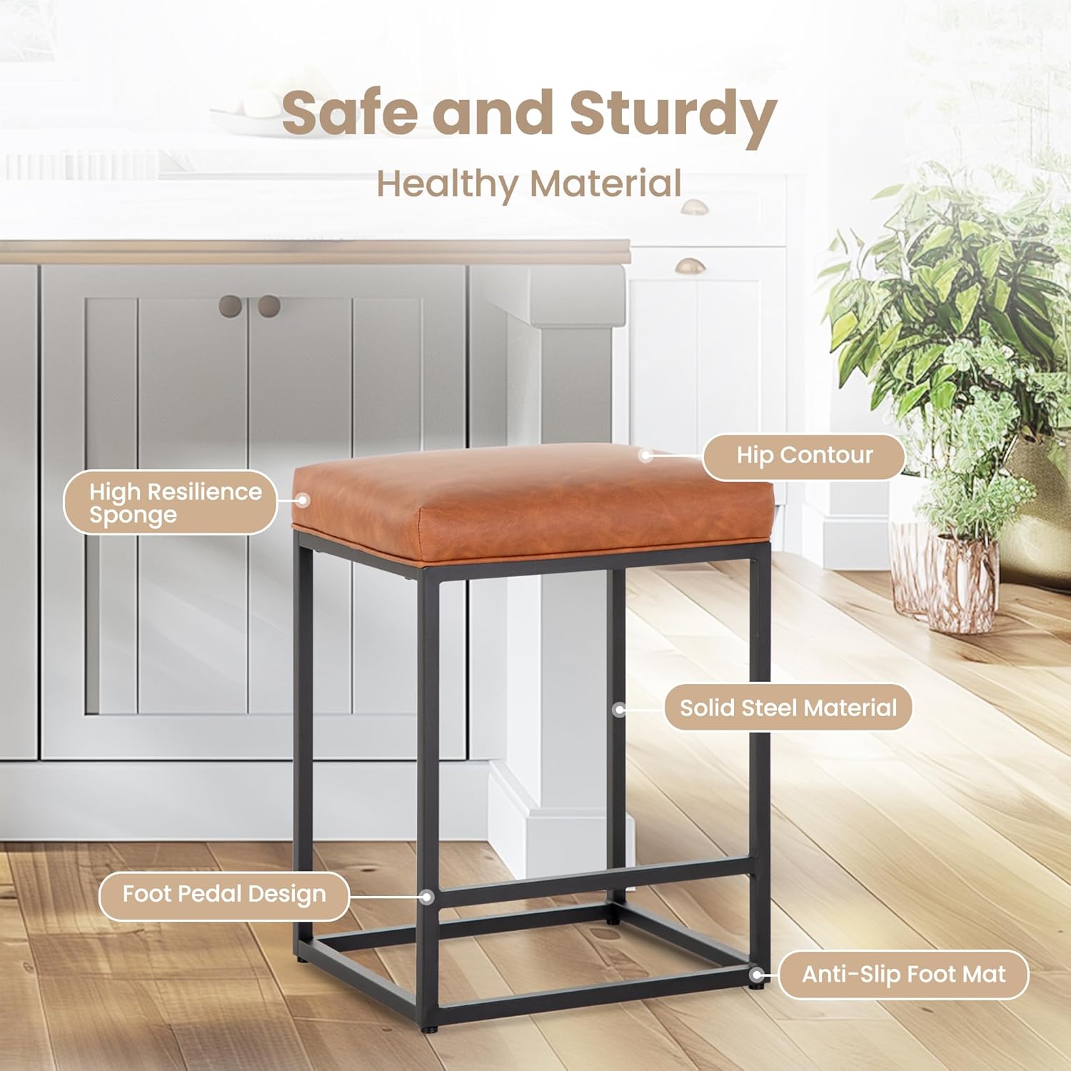 PHI VILLA Brown Bar Stools Set of 4-24 inch Counter Stools for Kitchen Island, Counter Height Bar stools