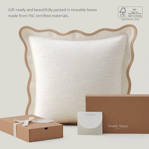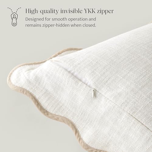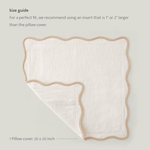 Double Stitch by Bedsure Scalloped Throw Pillow Covers, Cotton Decorative Pillow Covers 20" x 20" Made in India, Square Cushion Case for Living Room Couch, Accent Pillow Cover, Cream