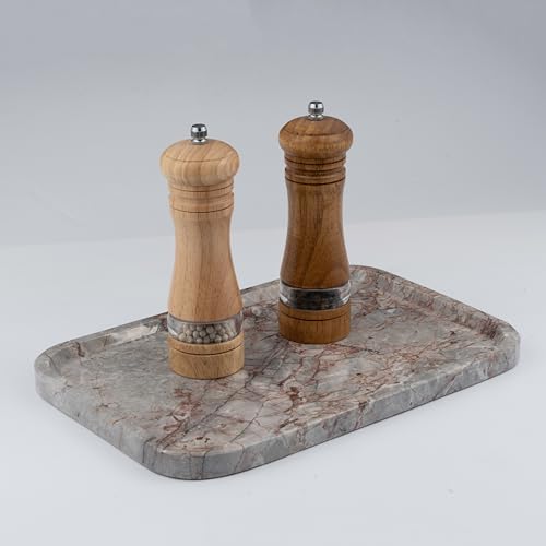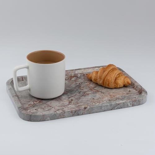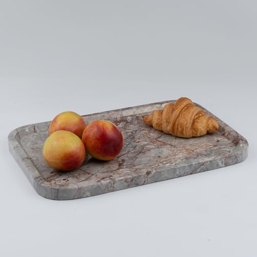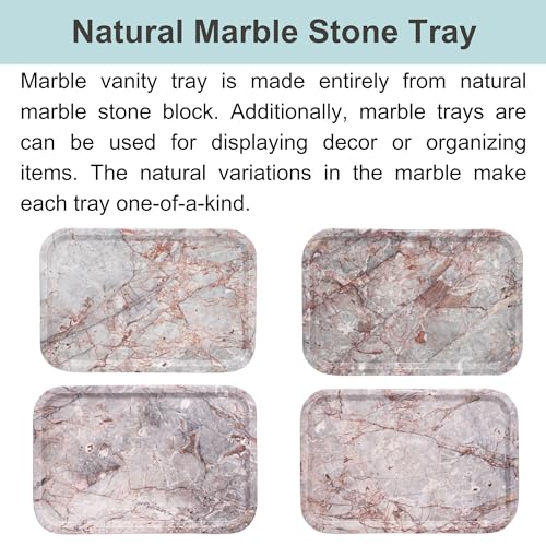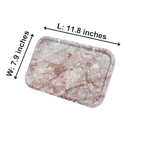 Rectangular Natural Marble Vanity Tray, 11.8x7.9x0.8inch, Marble Trays for Decor/Kitchen Counter/Bathroom Countertop/Coffee Table Vanity Tray, Gray-Ruby Veins
