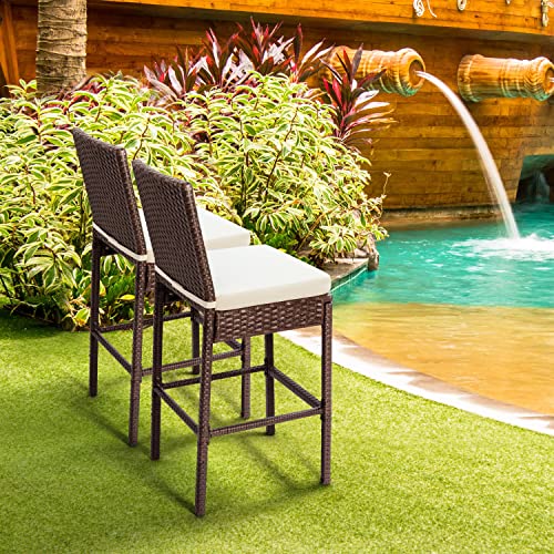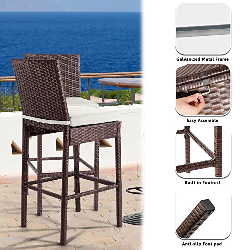 Outdoor Bar Stools Set of 2 Wicker Counter Height Bar Stools Patio Chairs Bar Height Patio Stools & Bar Chairs with Footrest Armless Cushion Navy Blue All Weather Rattan for Garden Pool Lawn Backyard