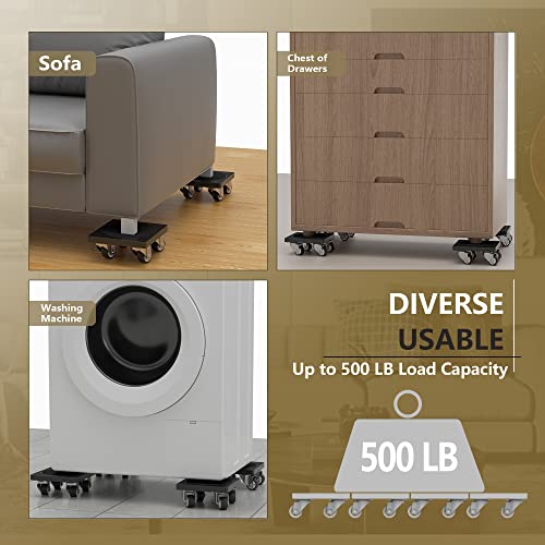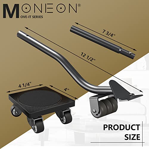 Furniture Movers with Wheels & Lifter Kit by ONEON, 1 1/4" Gentle Wheels Made of TPE, 500 LB Max Load Capacity, Furniture Dolly for Moving Heavy Furniture Tool Set (Square)