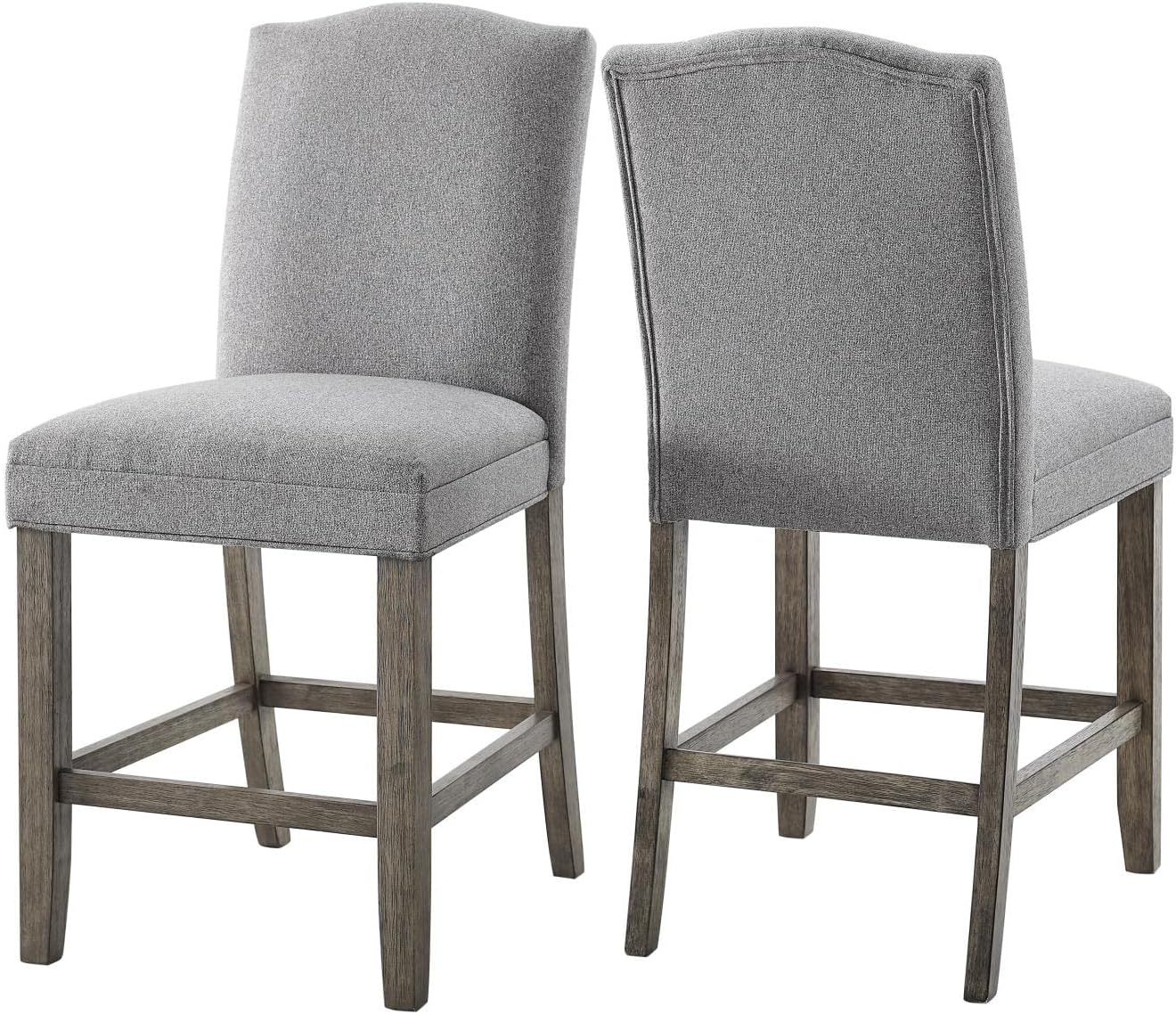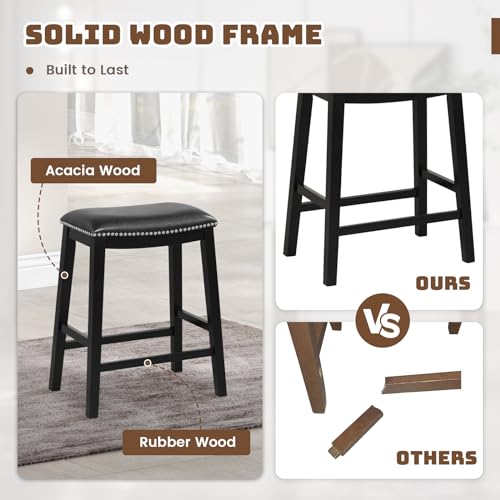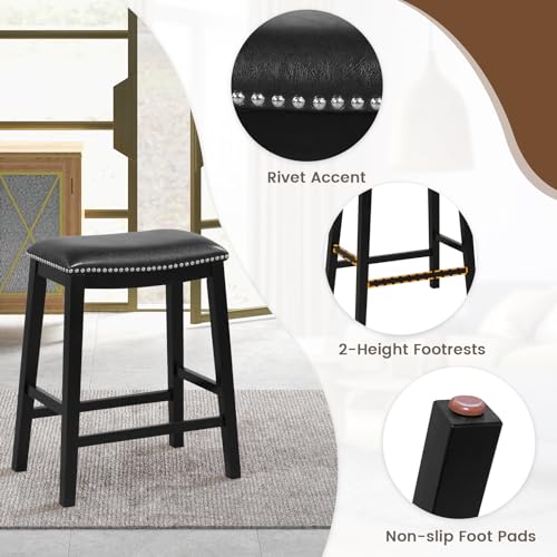 Giantex 26" Counter Height Bar Stools Set of 2, Faux PVC Leather Farmhouse Barstools w/Padded Seat, Wood Frame, Max Load 330 Lbs, Wood Saddle Bar Stools w/Nail Accents for Kitchen Island Pub, Grey