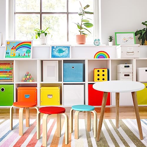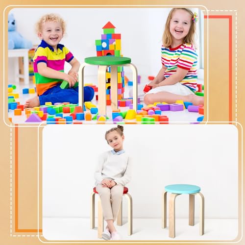 12 Inch Bentwood Stacking Stool for Kids Colored Durable Round Nesting Stool Flexible Wood Stackable Stool Chairs for Playroom Daycare Home Classroom(Colorful,8 Pcs)