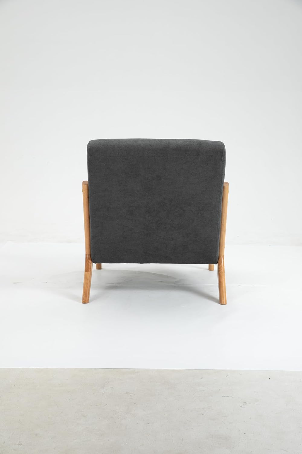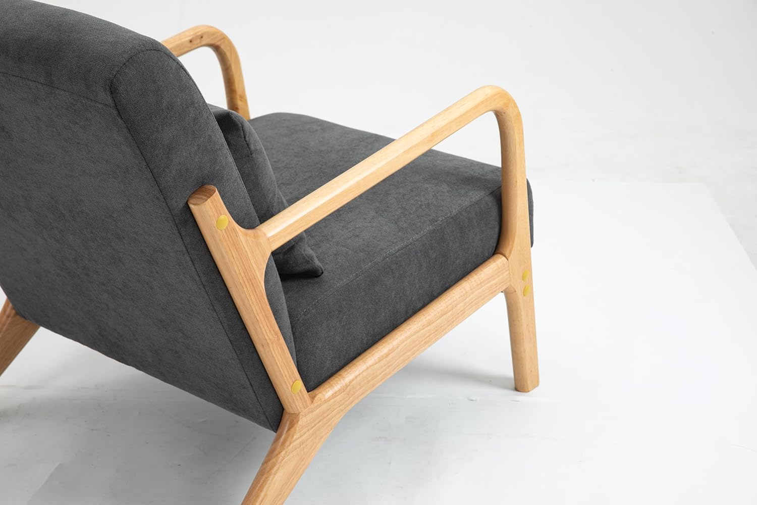 Mid Century Modern Accent Chair with Wood Frame, Upholstered Living Room Chairs with Waist Cushion, Reading Armchair for Bedroom Sunroom
