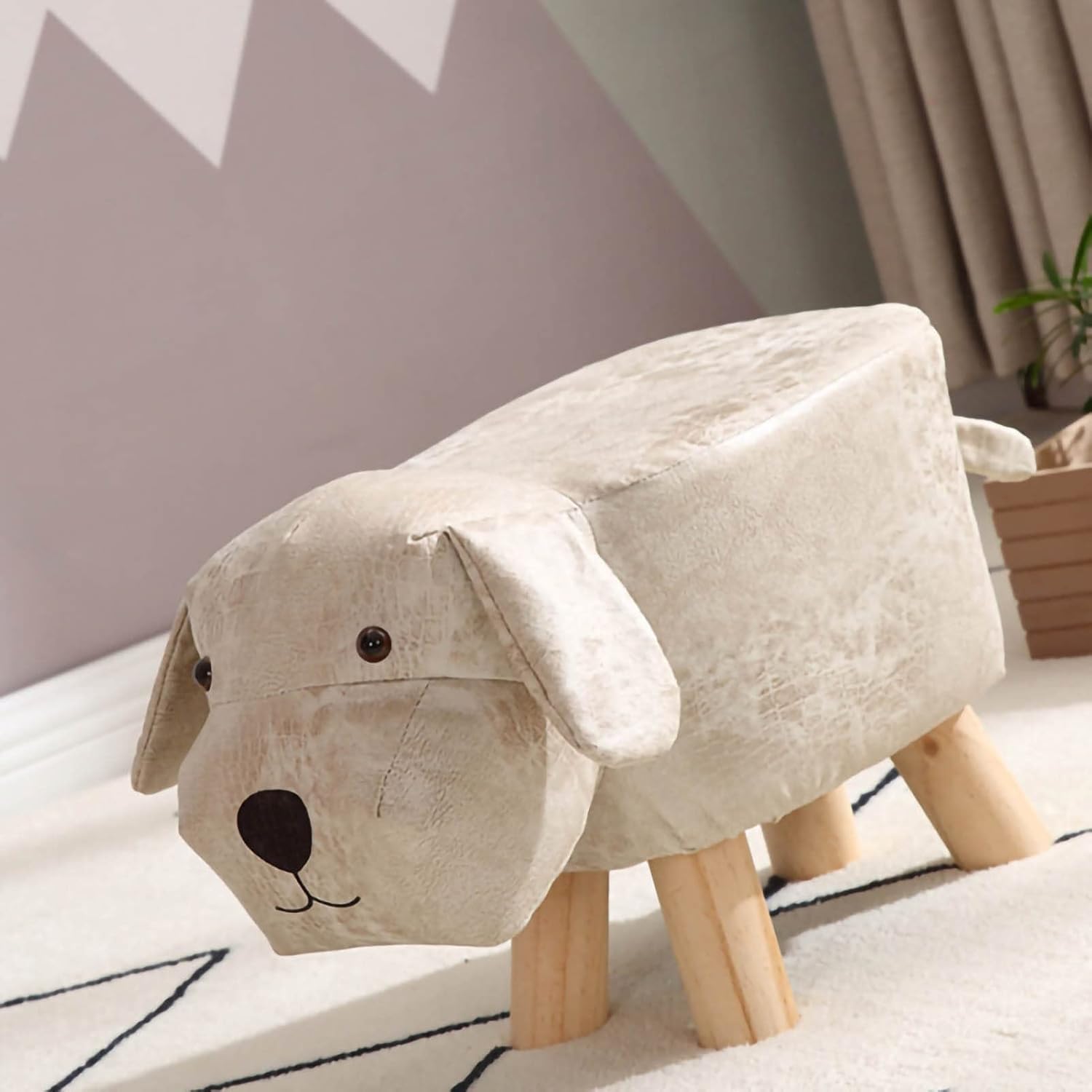 SASKATE Cute Cartoon Children Stool, Small Dog Shape Stool, Portable Children Wooden Low Stools for Home Kindergarten (Beige)