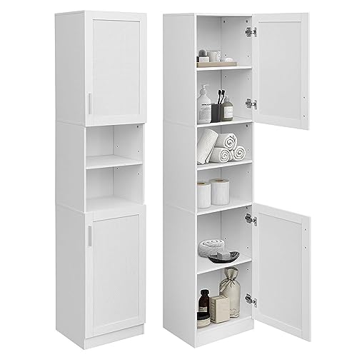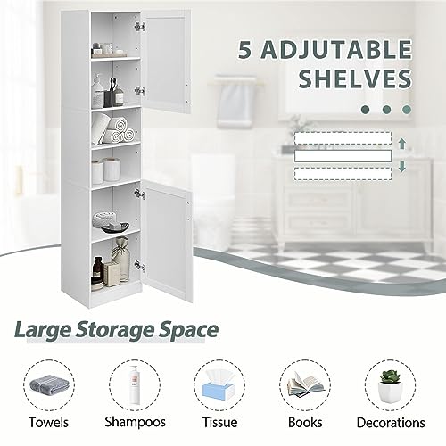 Narrow Linen Tower Cabinet, 70.87" Floor Freestanding Tall Linen Cabinet,Bathroom Tall Cabinet with 2 Doors & 5 Tier Adjustable Shelves, Linen Tower for Small Space