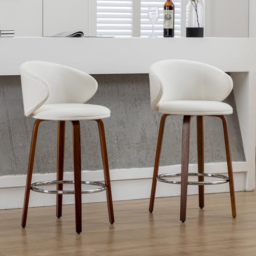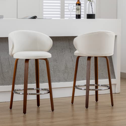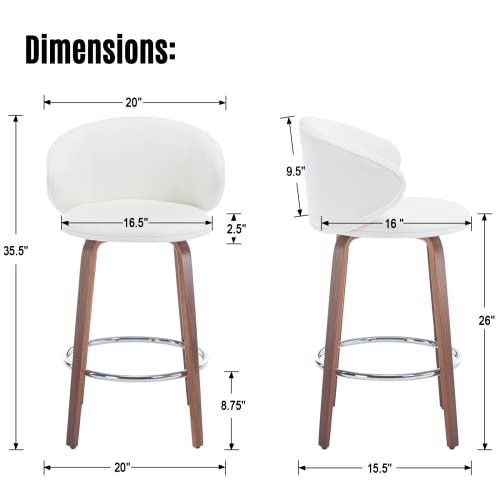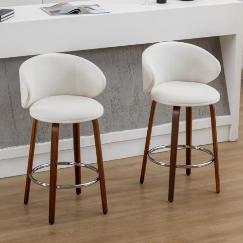 LukeAlon Velvet Counter Stools Set of 4, Upholstered 26" Seat Height Low Bar Stools with Wood Legs Modern Counter Height Bar Chairs with Footrest for Kitchen Dining Room, Cream White