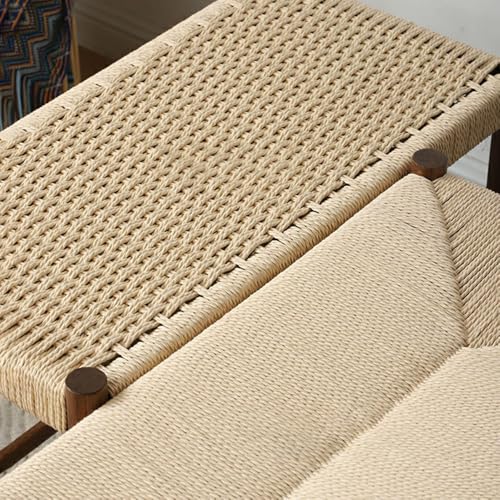 LITFAD Entryway Bench Simple Style Rectangular Shoe Changing Bench with Shoe Storage Solid Wood Braided Rope Bench for Foyer Fitting Room - Natural Wood 23.5" L x 14" W x 16.5" H Type A