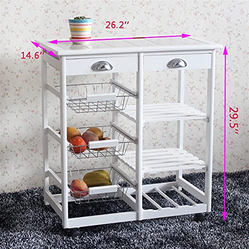 kitchen island service cart portable kitchen storage cart with two drawers, three baskets, two open shelves and a wine rack, universal lockable casters, suitable for families, restaurants, offi